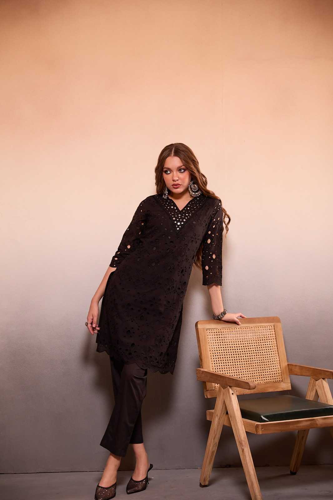 BLACK PURE COTTON BORING WITH PAPER MIRROR WORK B.NO 8789 2 PICEC COMBO SETS