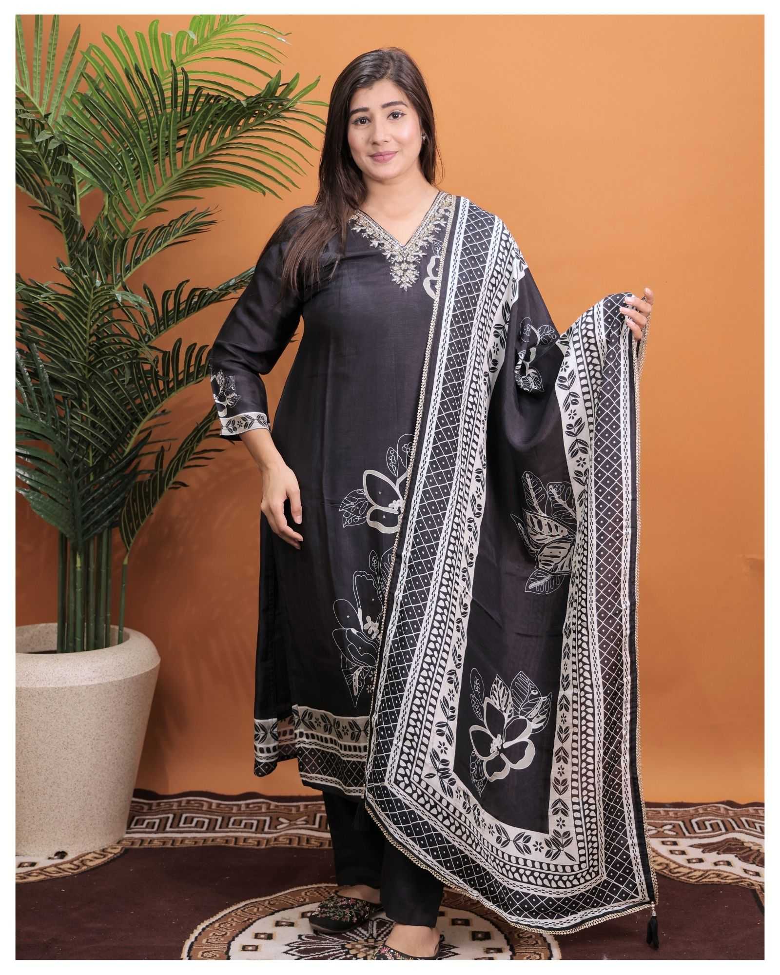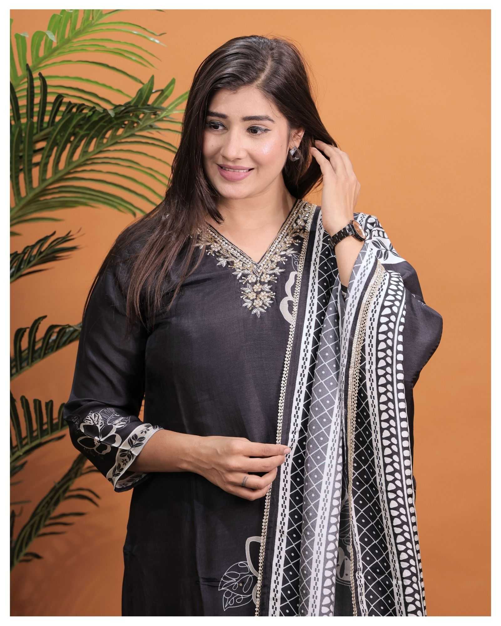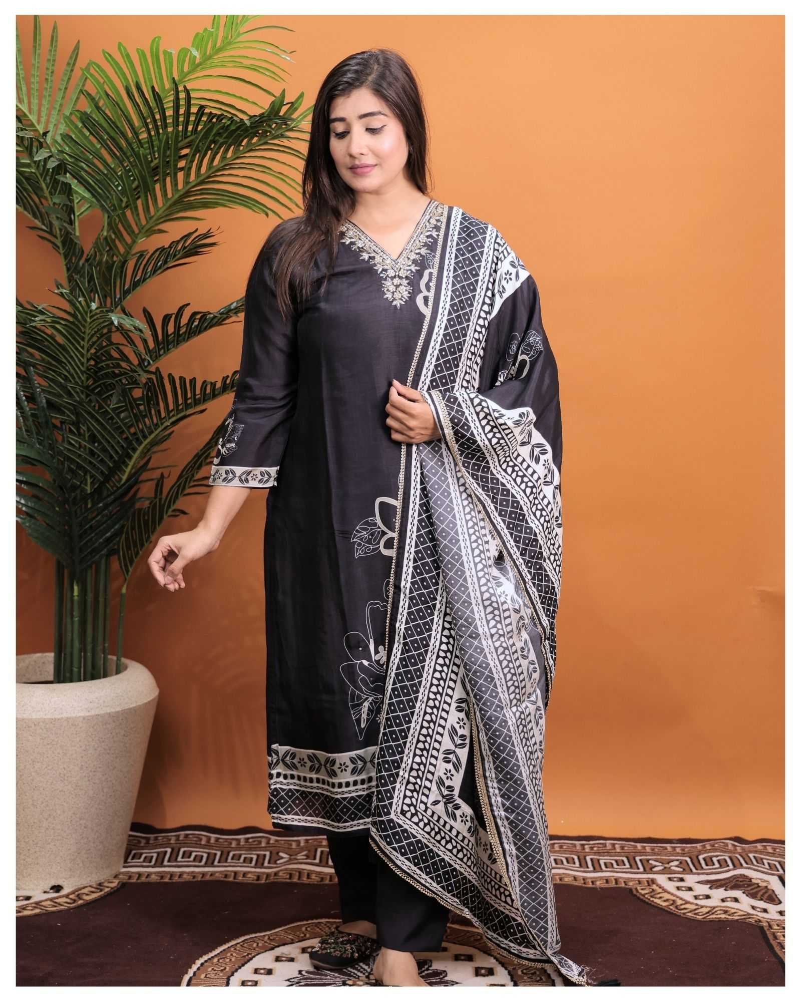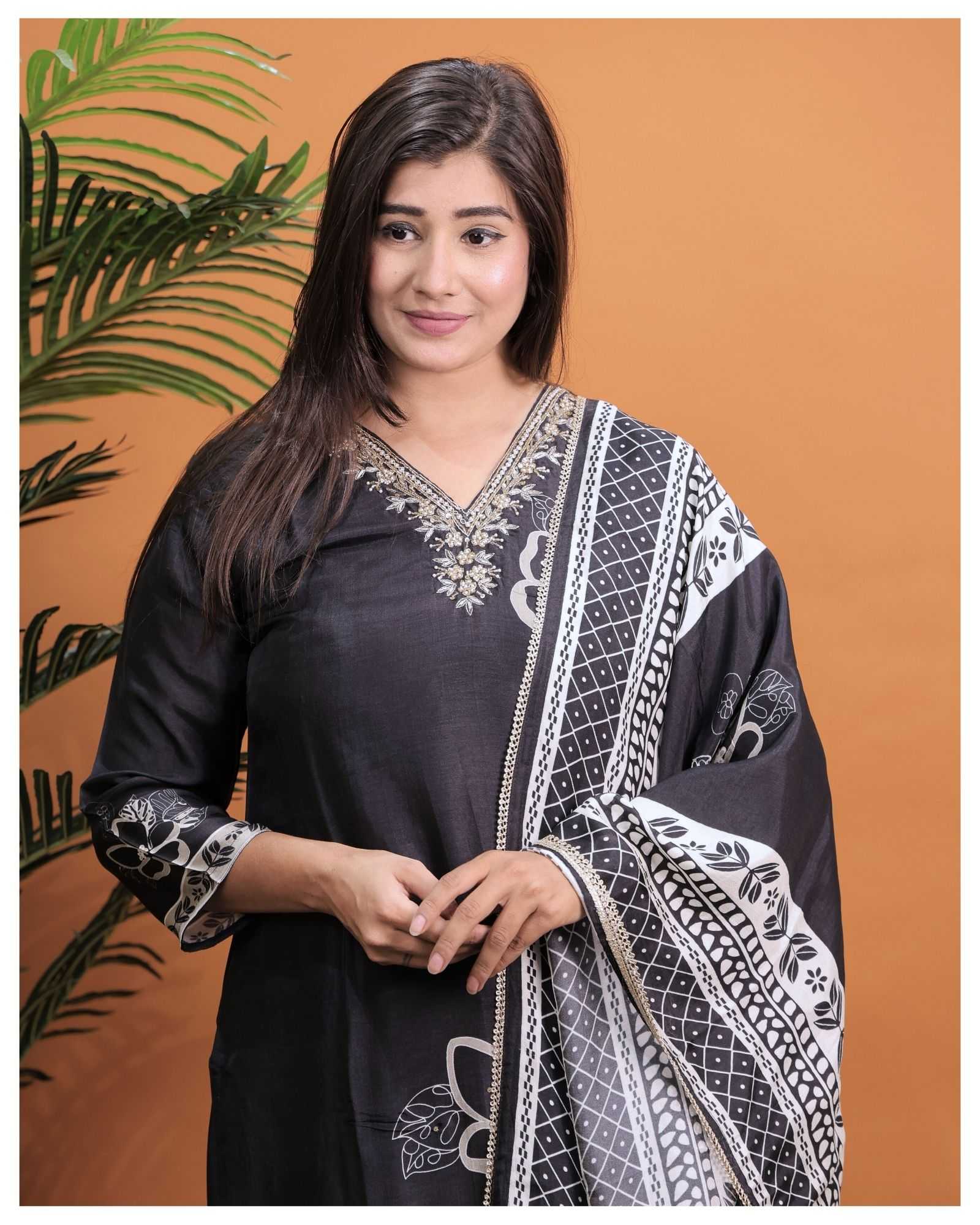 BLACK PURE MUSLIN B.NO.8790 3 PIECE COMBO SUITS