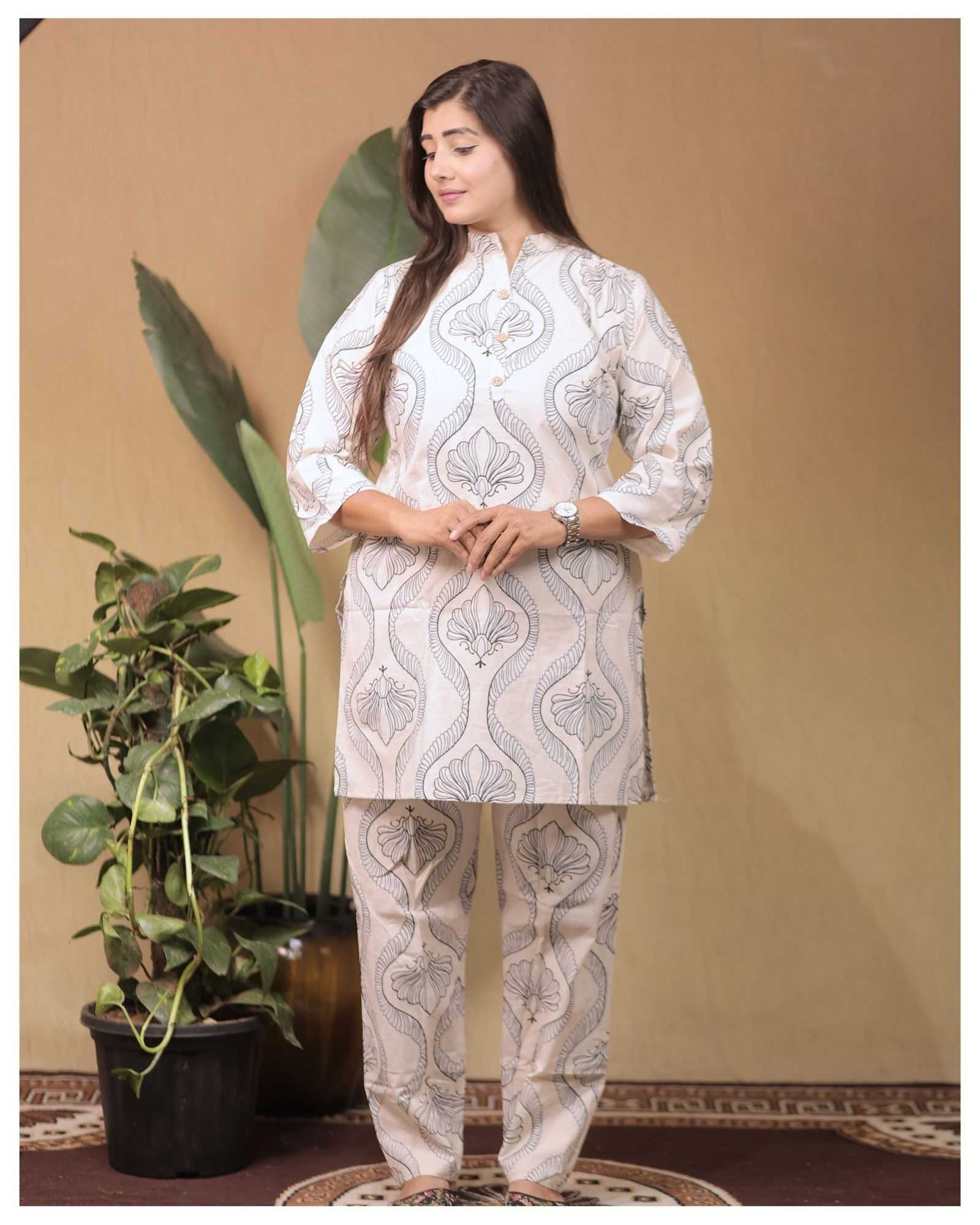 COTTON FLEX WITH BEGI PRINT TO FESTIVE COLAR WEAR STRAIGHT CUT CORD SET STYLE DESIGNER 2 PIECE COMBO SUITS IN WHOLESALE RATE IN SURAT