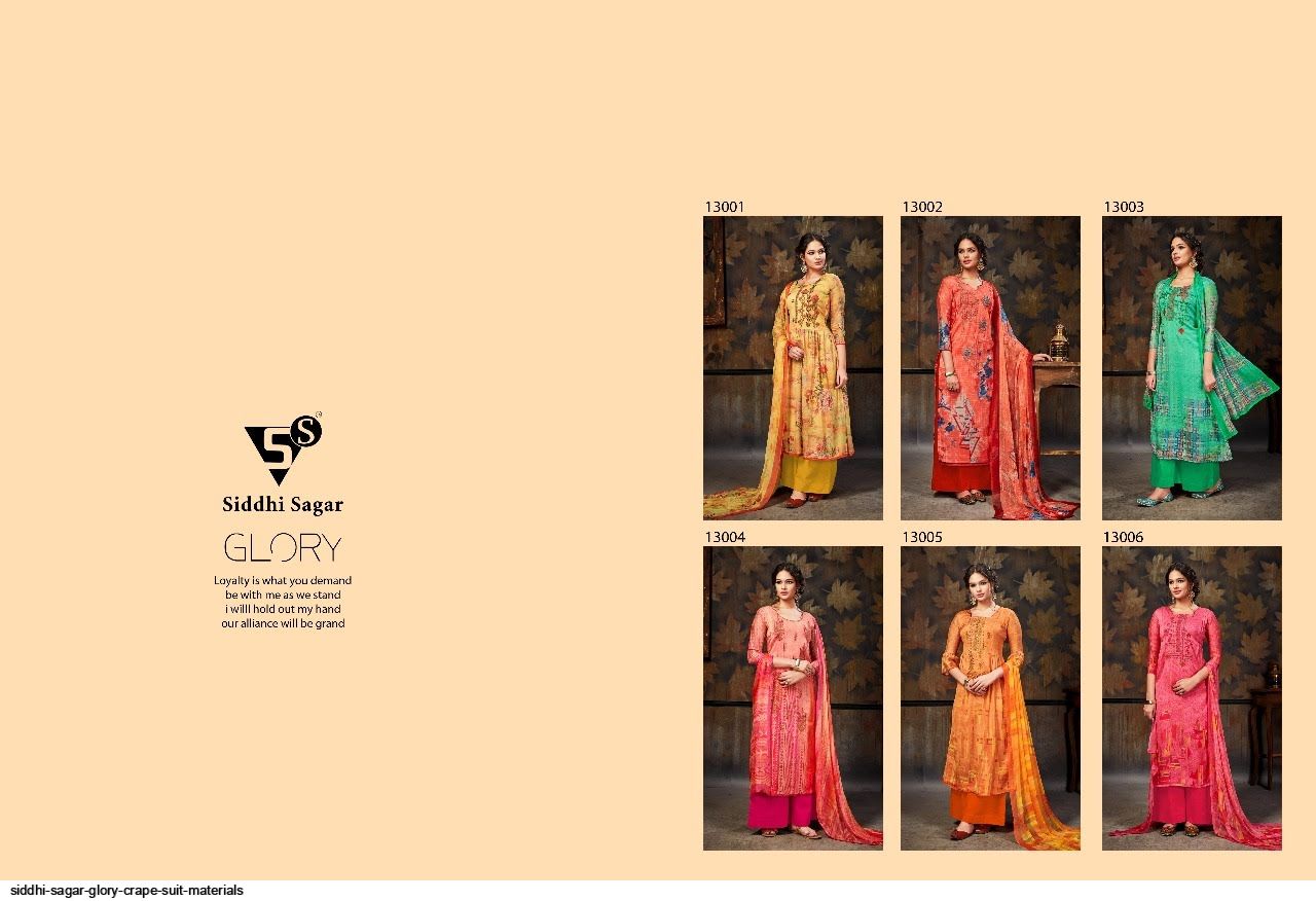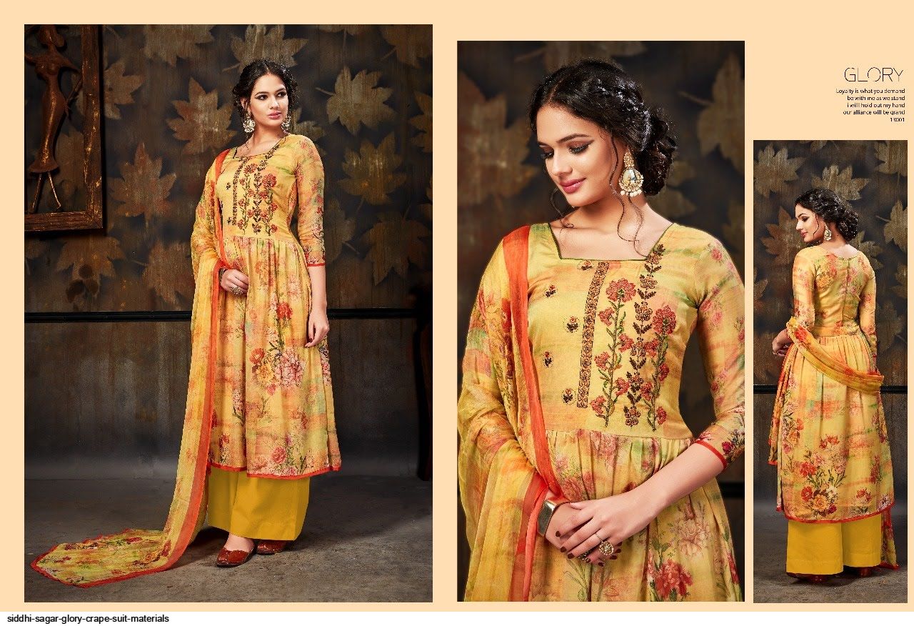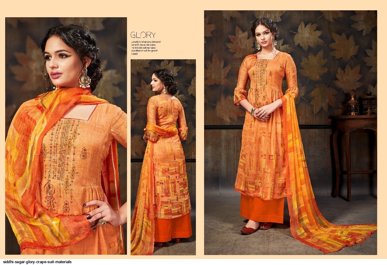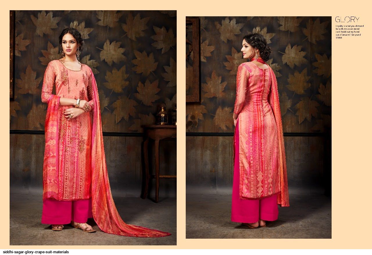 Glory Crep Material Suits By Sidhi Sagar At Wholesale Rate In Surat