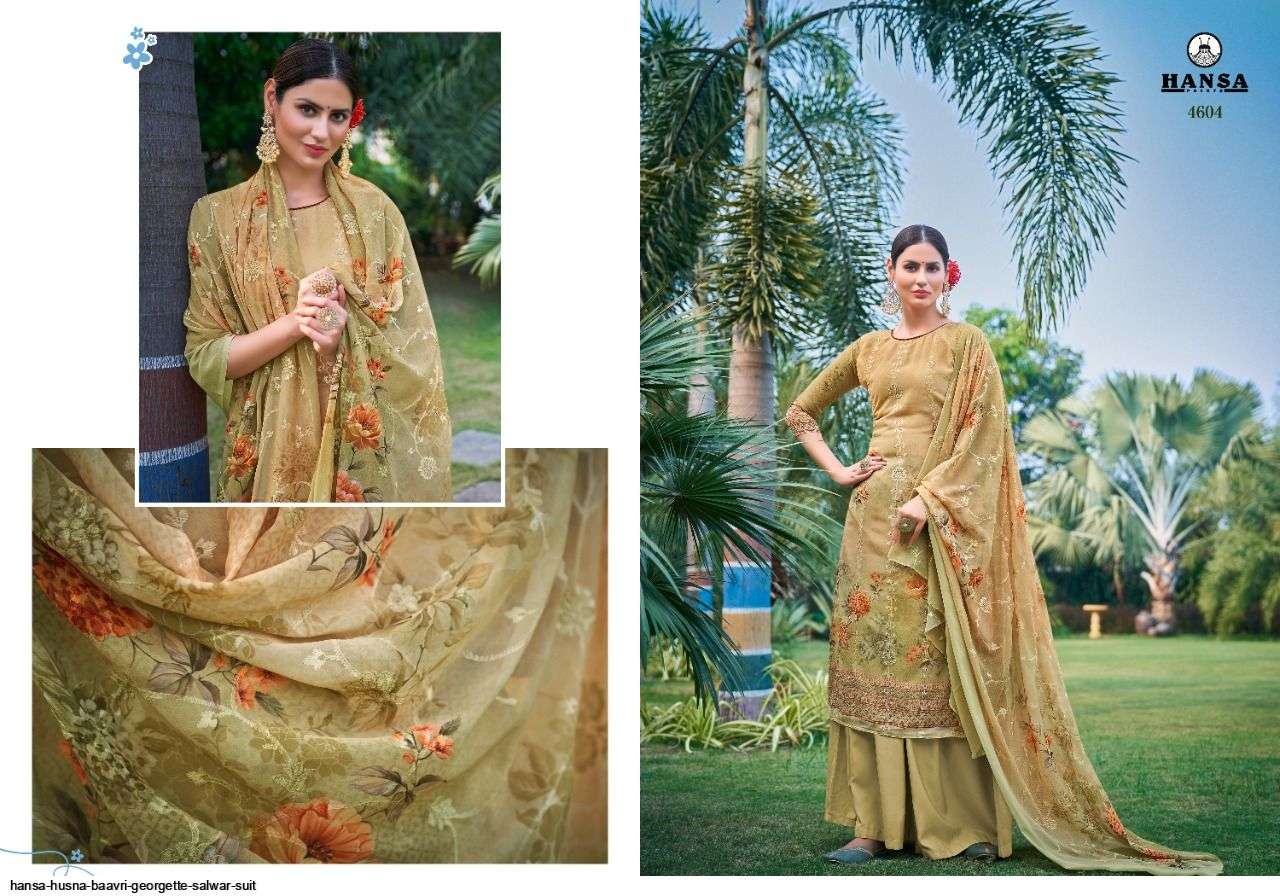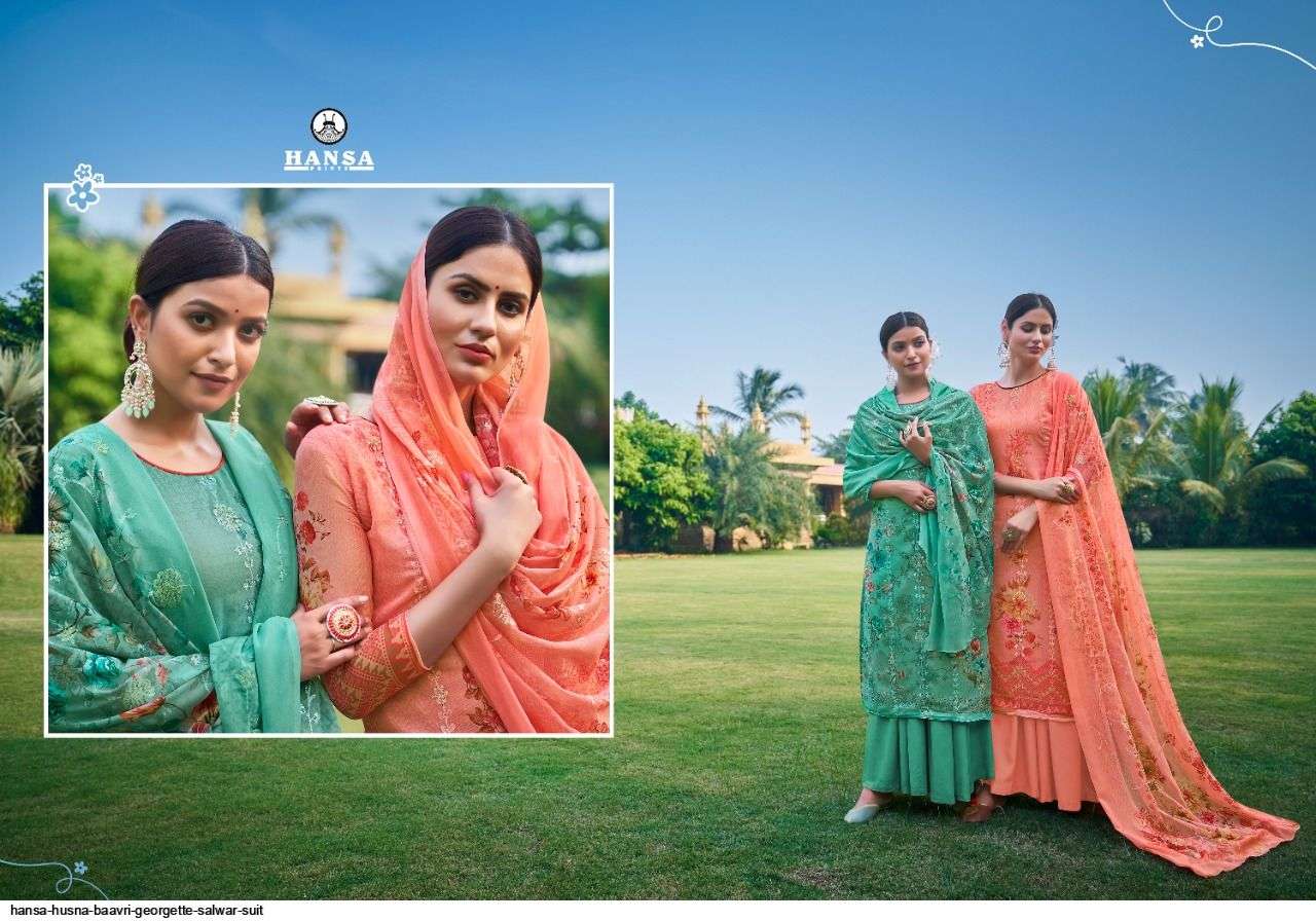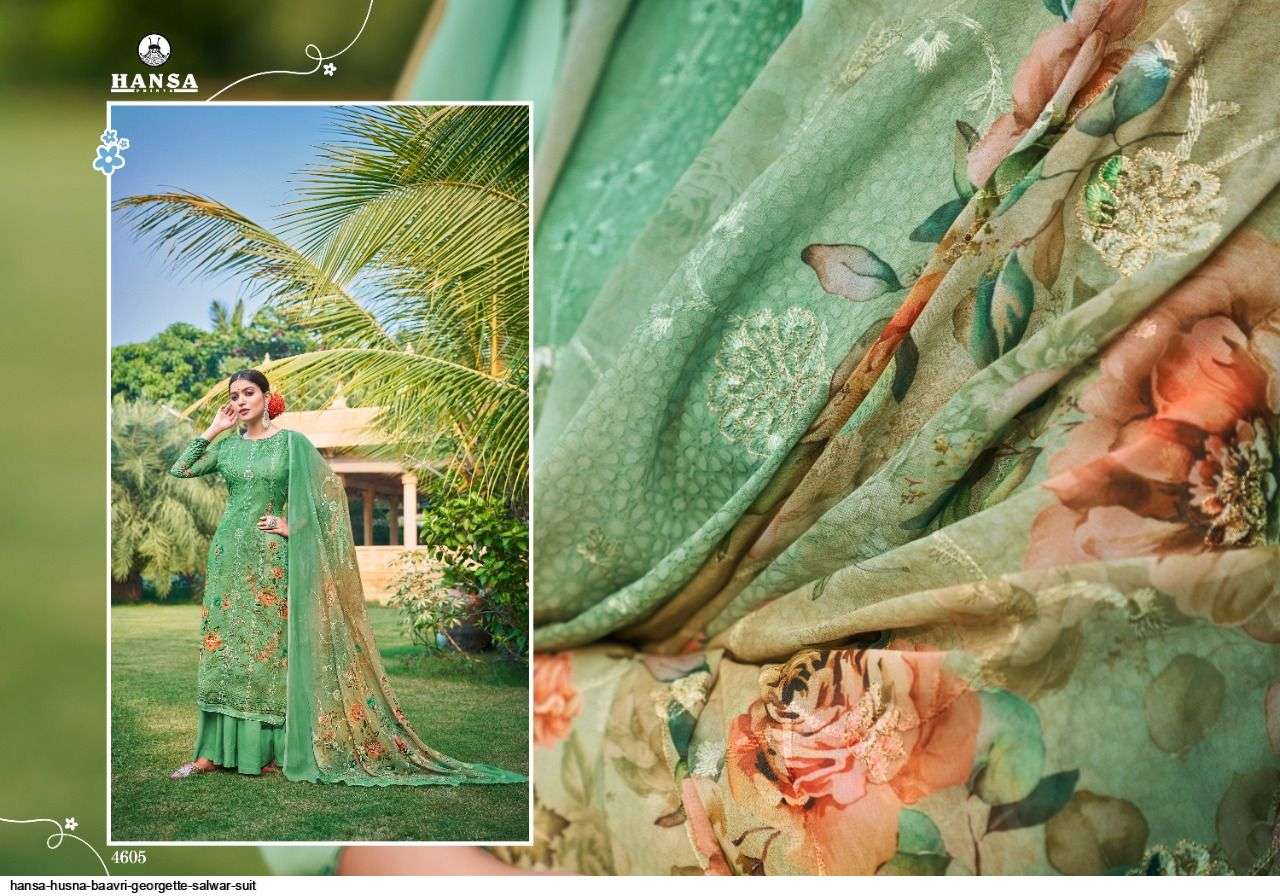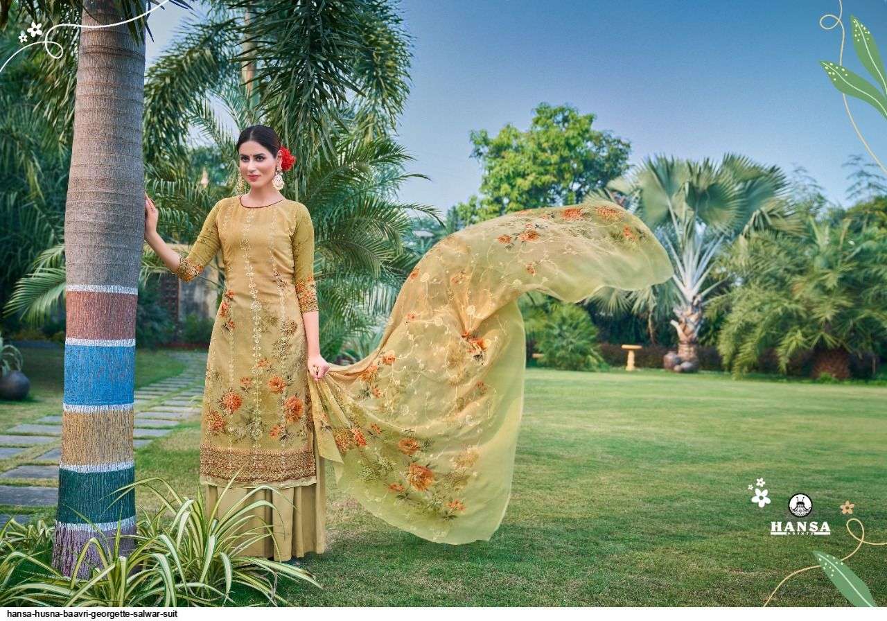 HANSA PRESENT HUSNA BAAVRI GEORGETTE SALWAR SUIT IN WHOLESALE PRICE IN SURAT - SAI DRESSES