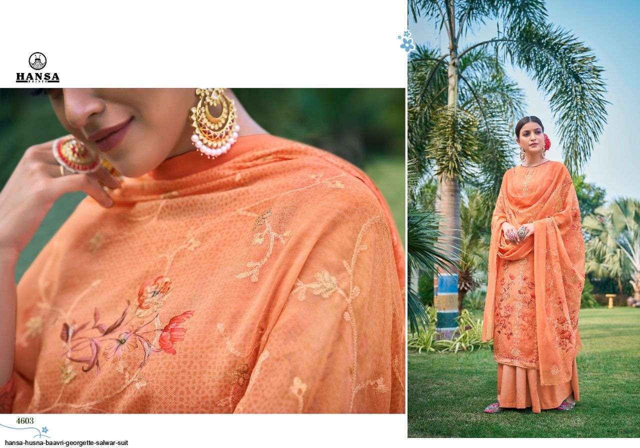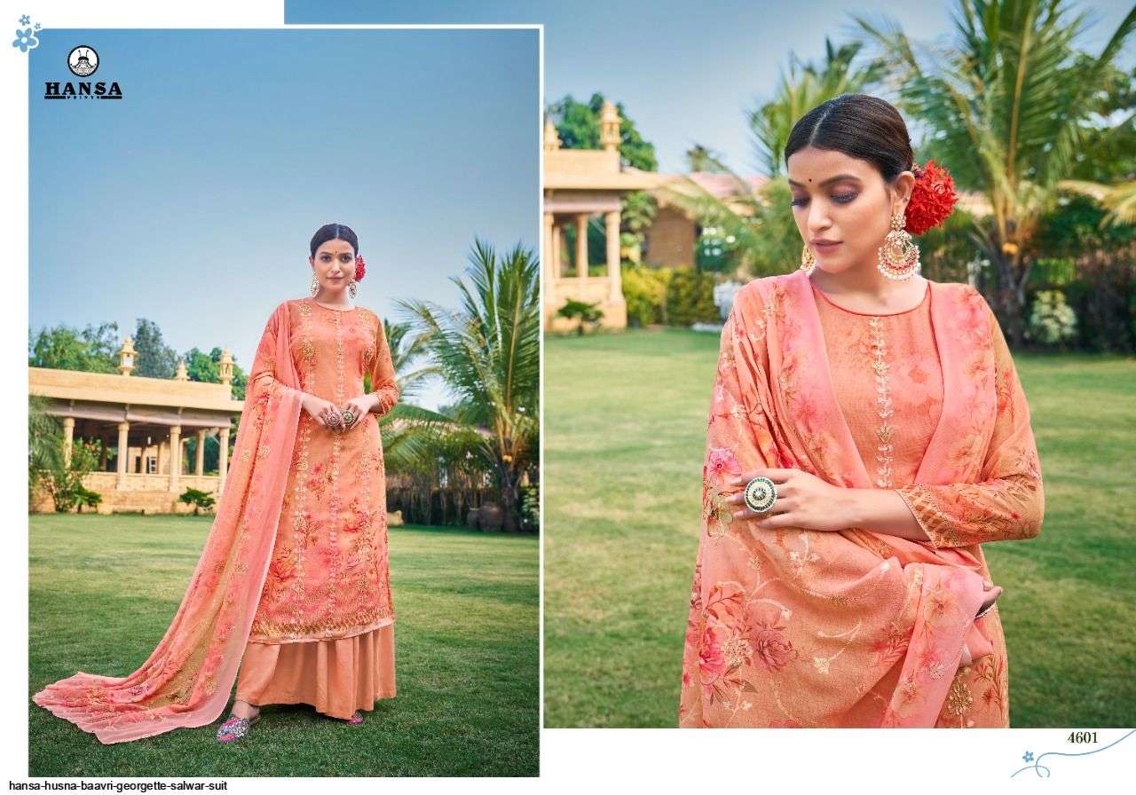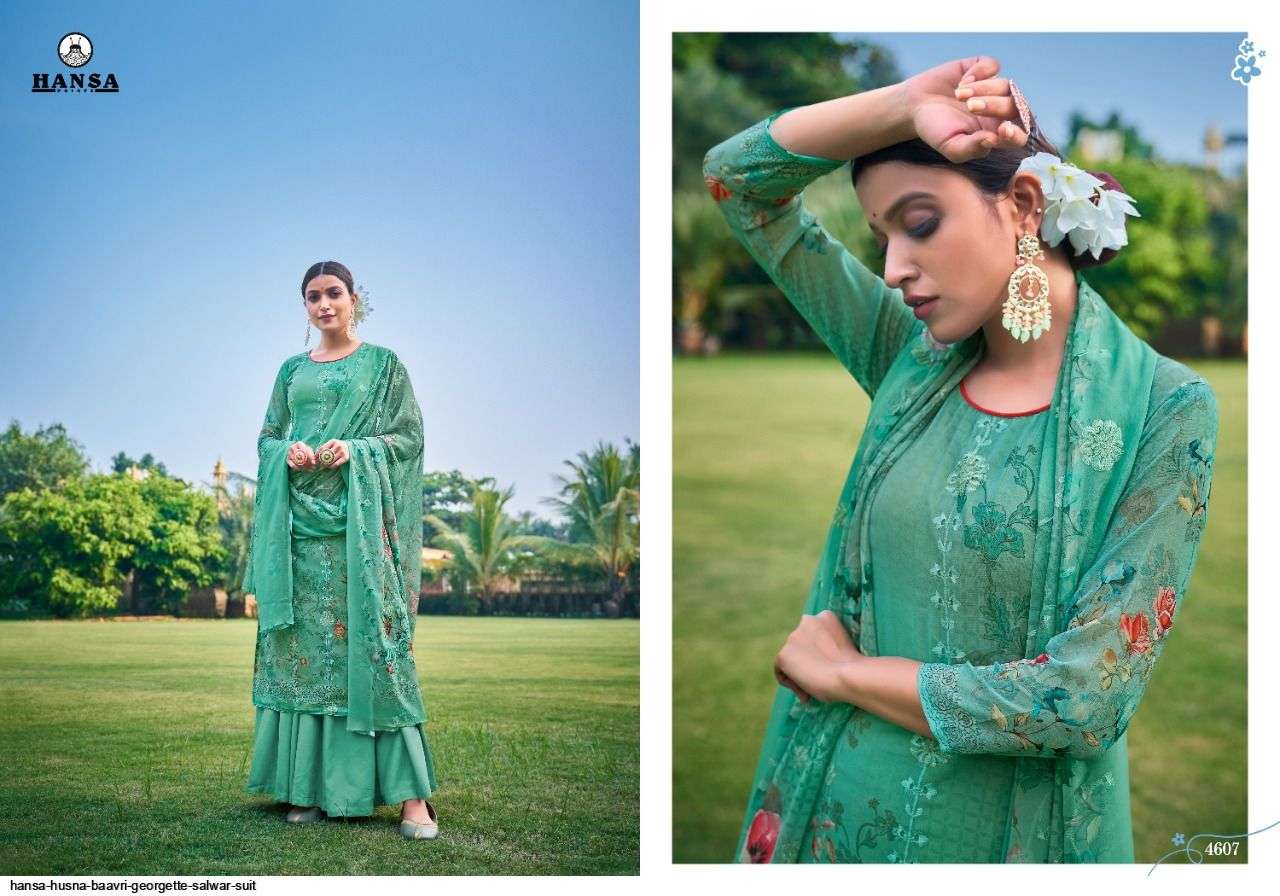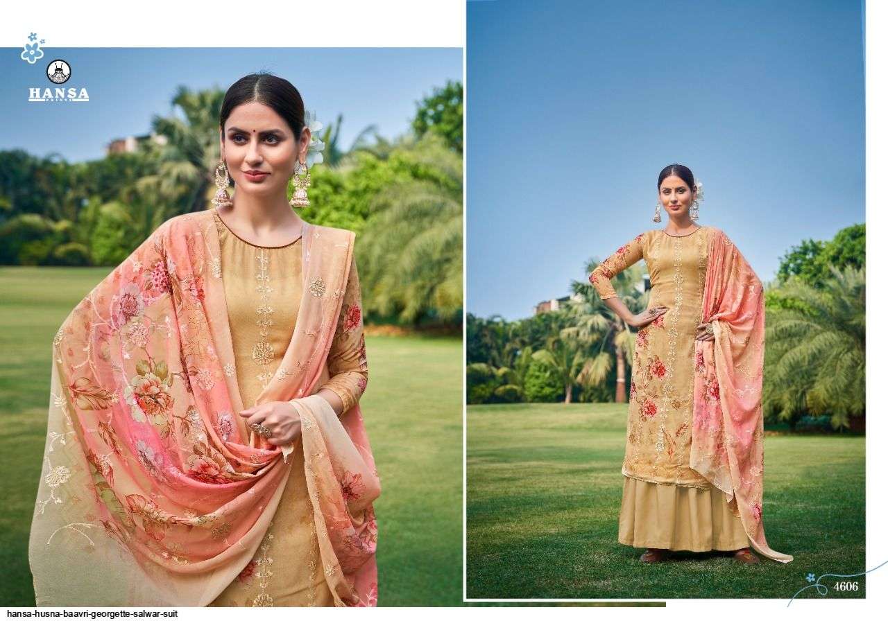 HANSA PRESENT HUSNA BAAVRI GEORGETTE SALWAR SUIT IN WHOLESALE PRICE IN SURAT - SAI DRESSES