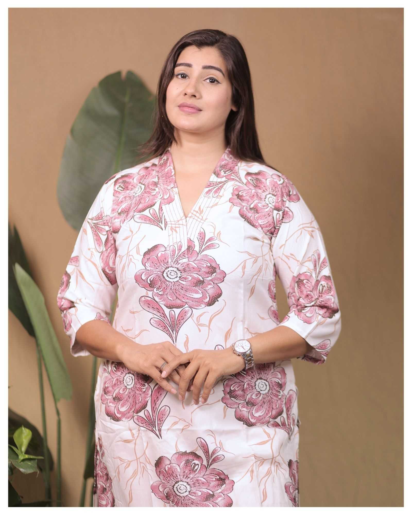 HEAVY REYON WITH ROSES PRINT ON TO FESTIVE WEAR KURTI PANT STYLE DESIGNER 2 PIECE COMBO SUITS IN WHOLESALE RATE IN SURAT