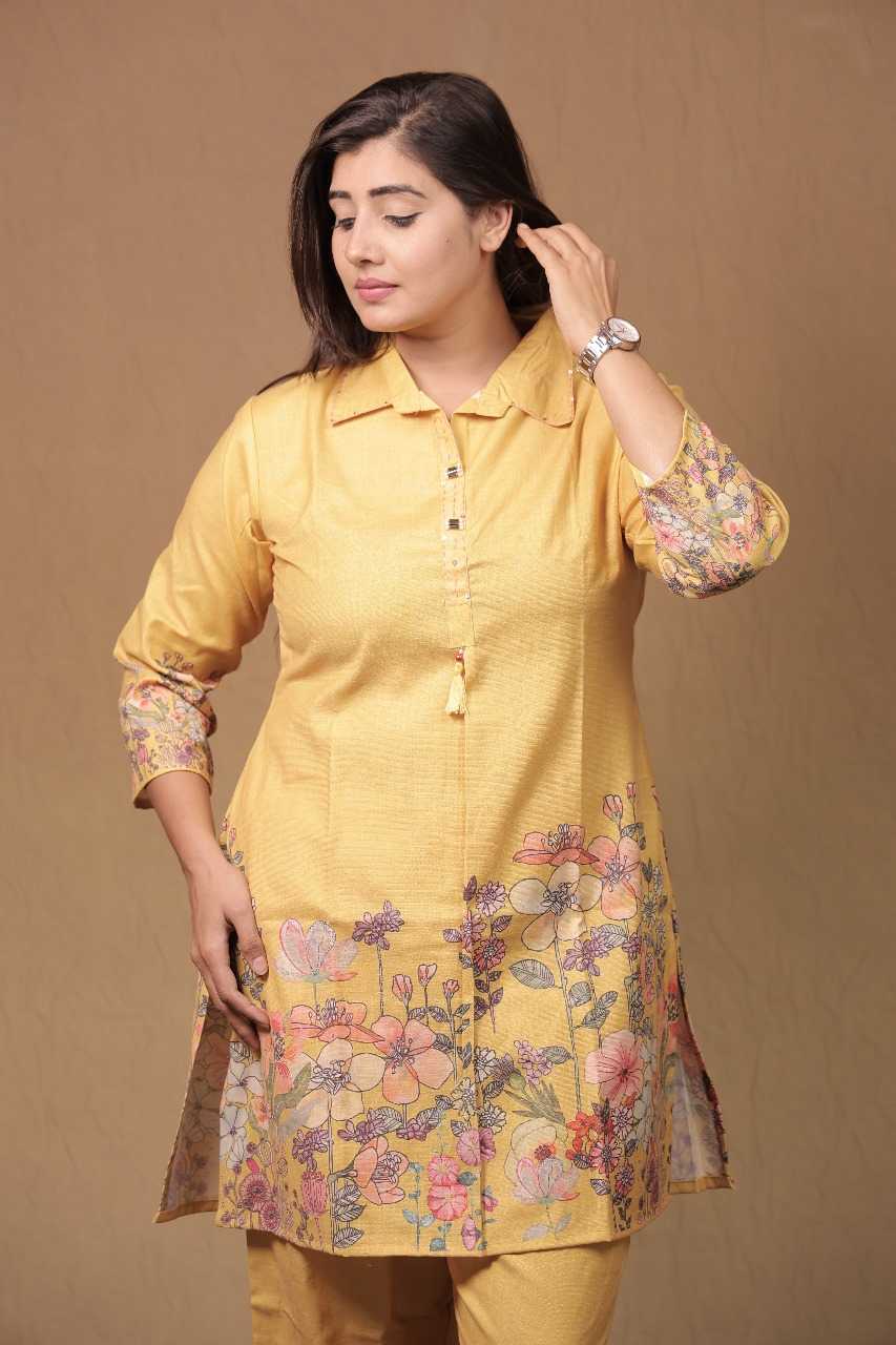HONEY FLOWER PRINT HEAVY COTTON WITH WORK TO FESTIVE COLAR WEAR STRAIGHT CUT CORD SET STYLE DESIGNER 2 PIECE COMBO SUITS IN WHOLESALE RATE IN SURAT
