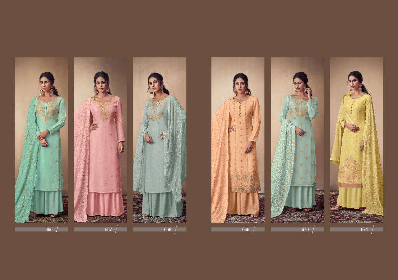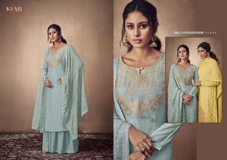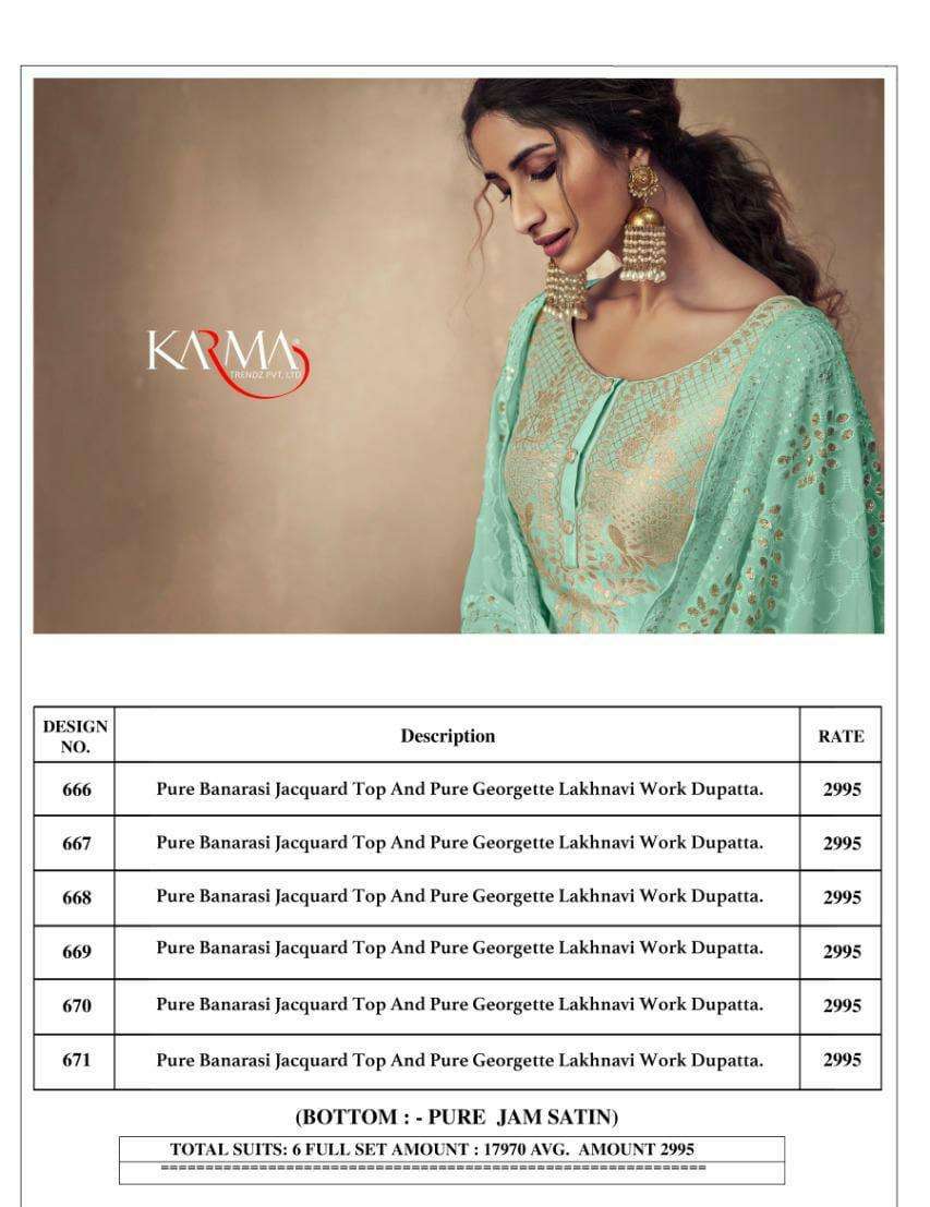 Karma Trandz Presents 666-671 Series Banarasi Jacquard Festive Season Exclusive Salwar Suits At Wholesale Rate In Surat