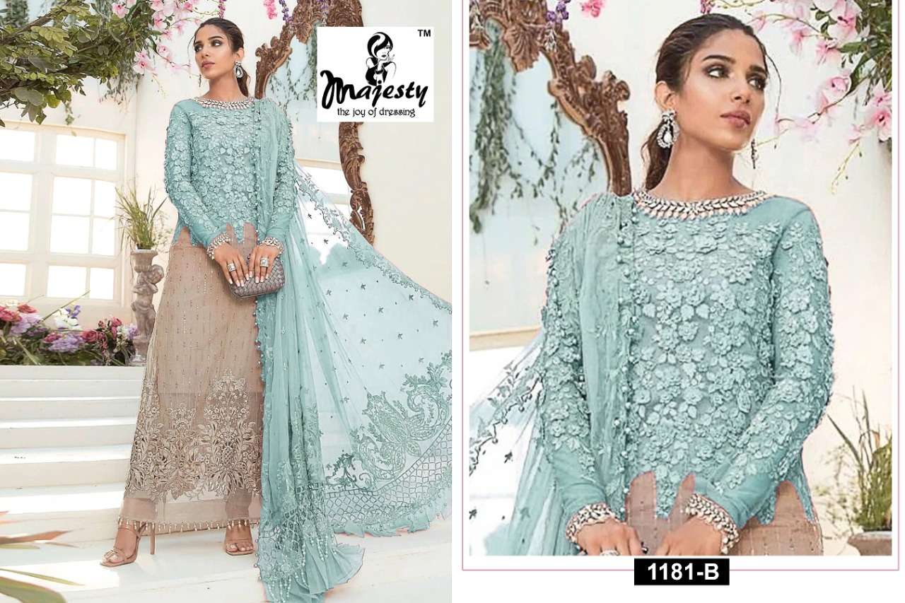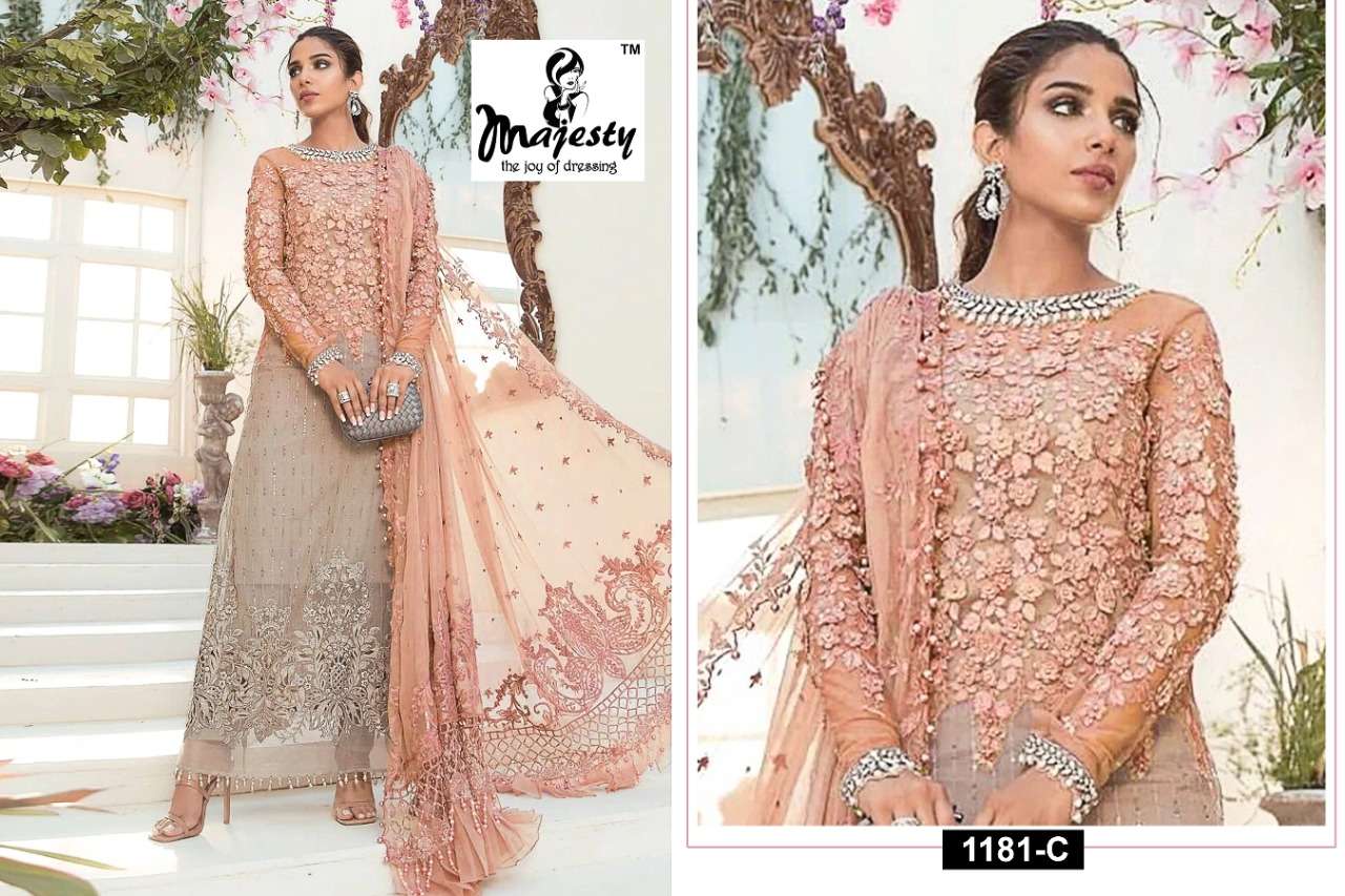 MAJESTY PRESENT MAJESTY D.NO 1181 A TO 1181 D SEMI STITCHED EMBROIDERED DESIGNER SUITS IN WHOLESALE RATE IN SURAT - SAI DRESSES