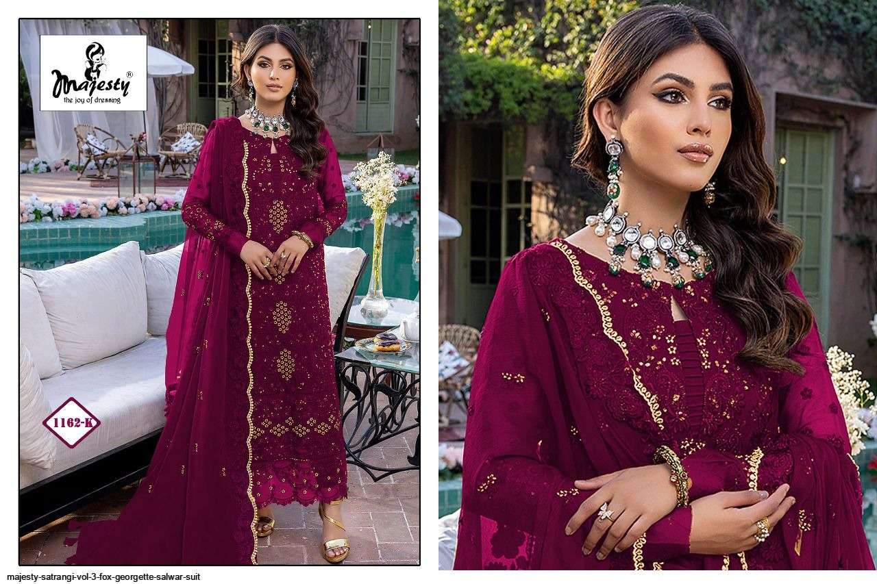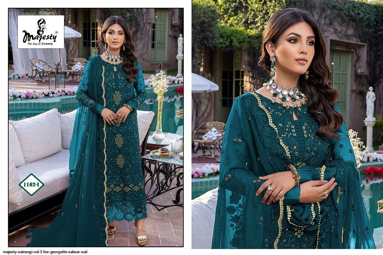 MAJESTY PRESENTS SATRANGI VOL-3 1162-A TO 1162-K DESIGNER GEORGETTE PAKISTANI SUIT WHOLESALE RATE IN SURAT - SAI DRESSES