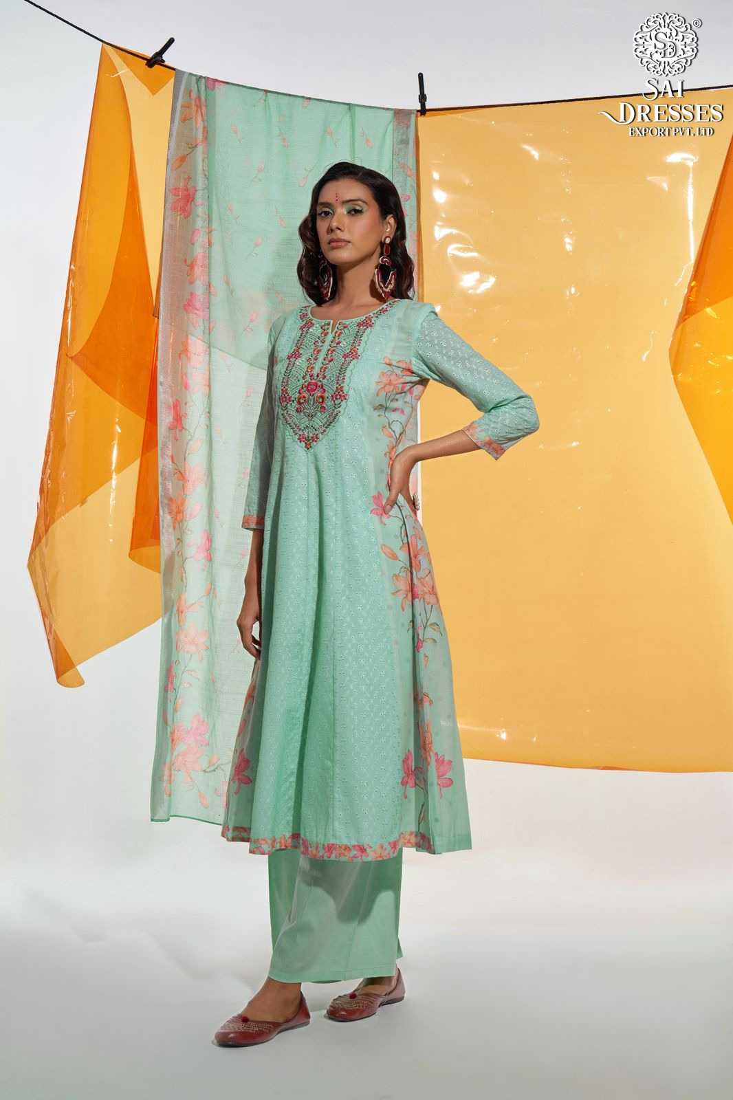 MINT WHISPER EMBROIDERED ENSEMBLE KURTA SET 3 PIECE COMBO SUITS IN WHOLESALE RATE IN SURAT