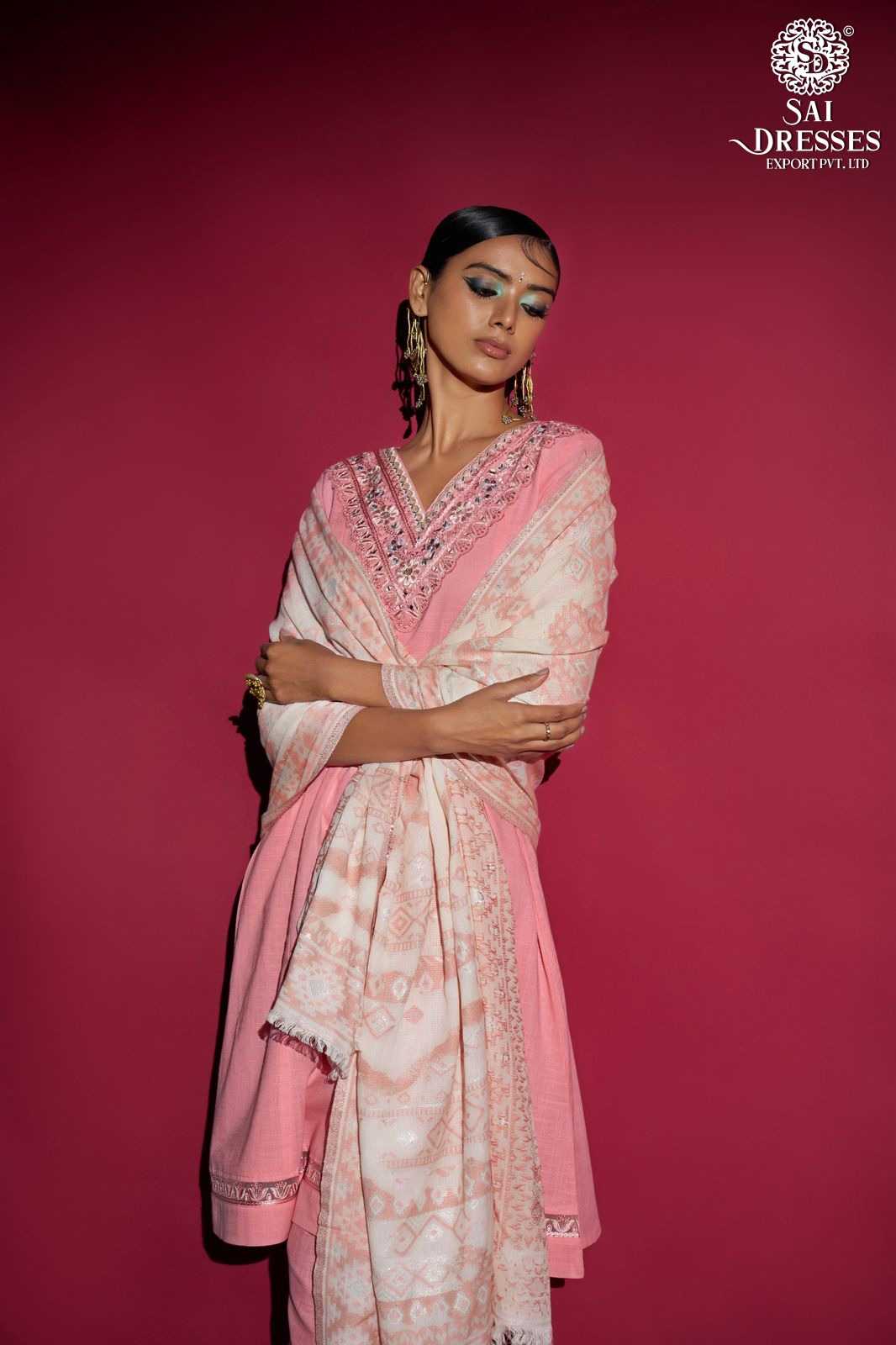 PEACH MIST STRAIGHT KURTA SET B.NO. 9182-I 3 PIECE COMBO SET