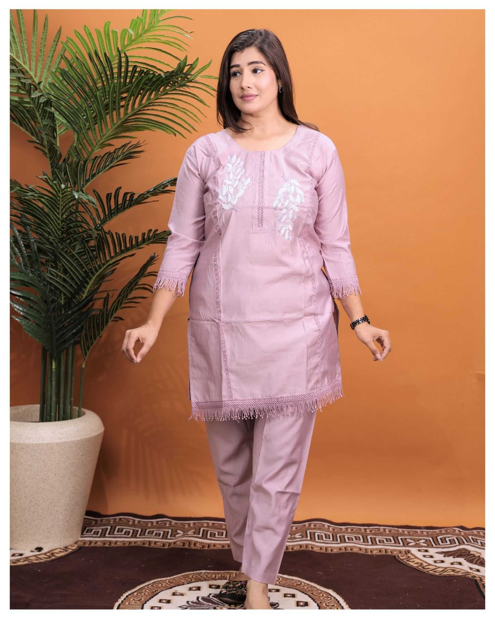 PINK ROMAN SILK WITH HEAVY HANDWORK TO FESTIVE WEAR STRAIGHT CUT CORD SET STYLE DESIGNER 2 PIECE COMBO SUITS IN WHOLESALE RATE IN SURAT