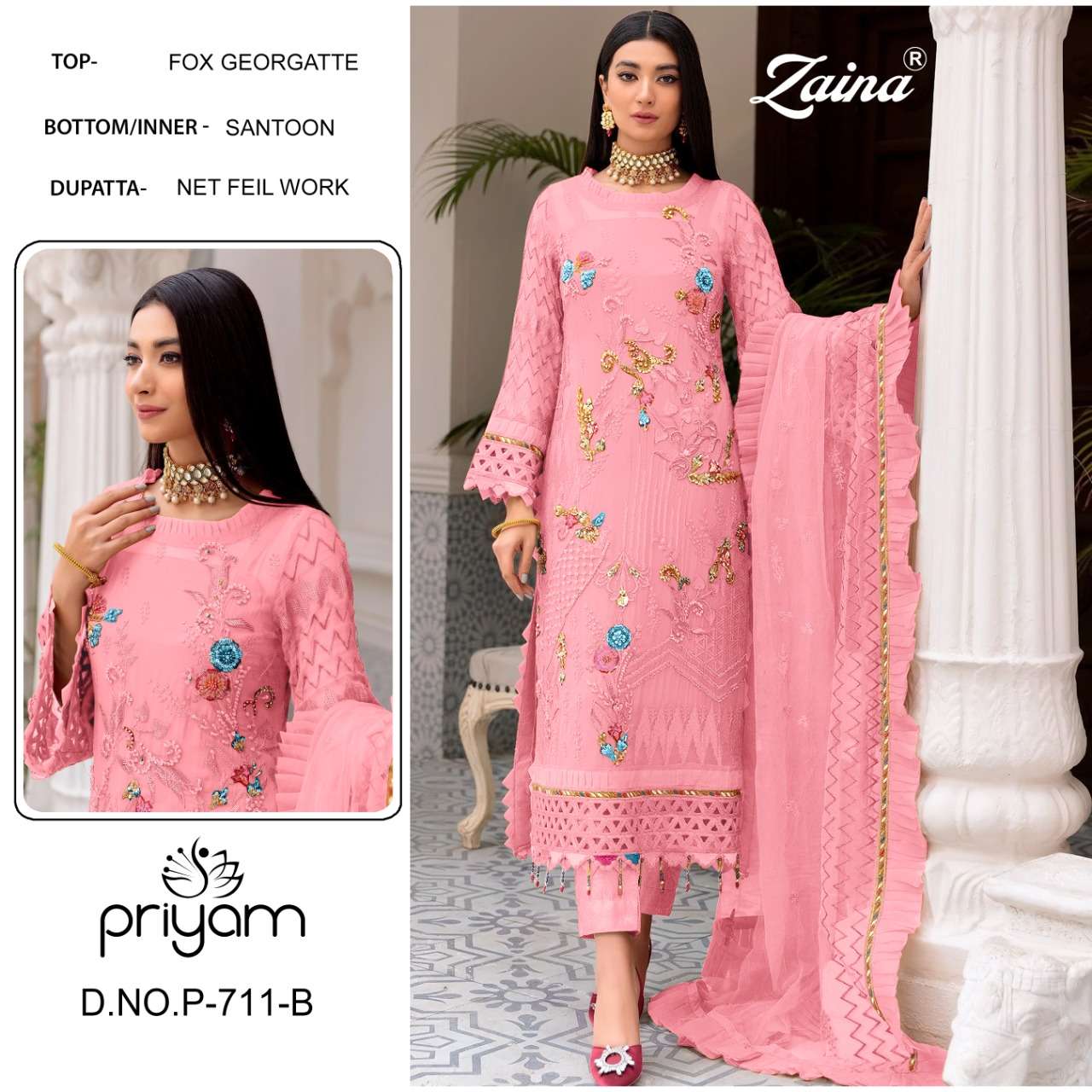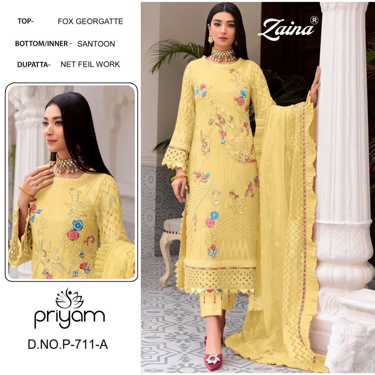 PRIYAM FASHION PRESENT ZAINA P-711-A TO P-711-D SERIES SEMI STITCHED PAKISTANI SUITS IN WHOLESALE PRICE IN SURAT - SAI DRESSES