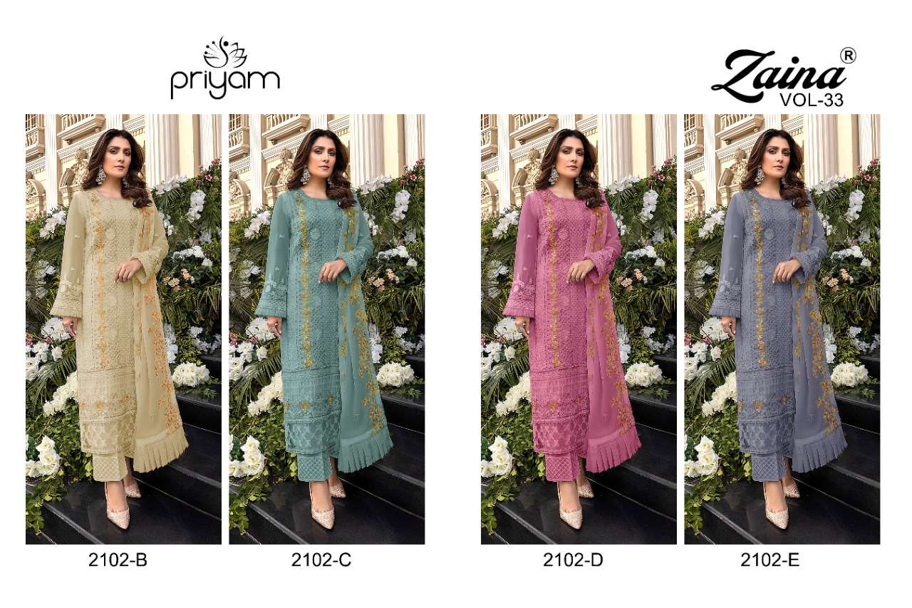 PRIYAM FASHION PRESENTS ZAINA VOL-33 DN. 2102.B.to 2102.E.