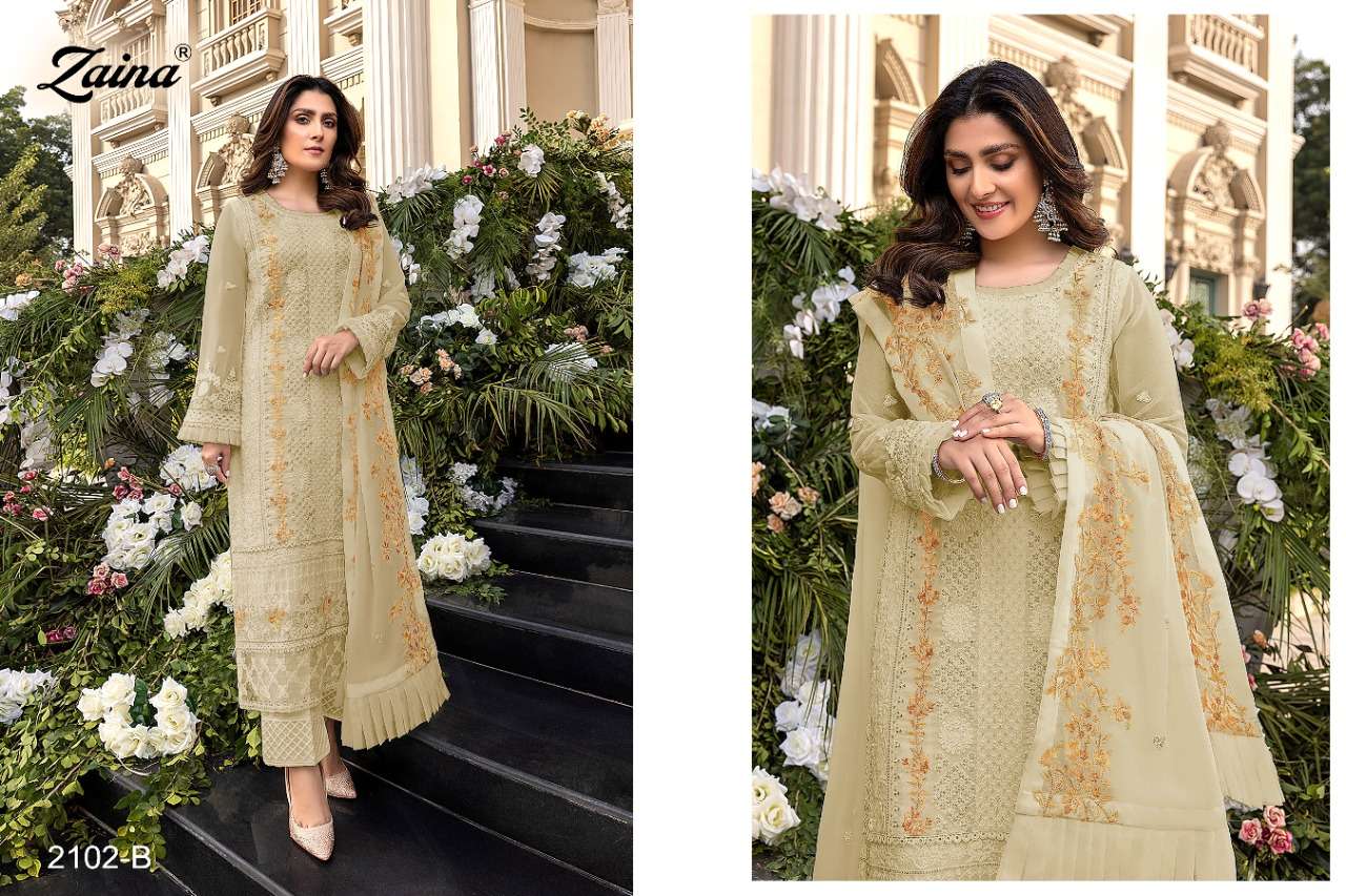 PRIYAM FASHION PRESENTS ZAINA VOL-33 DN. 2102.B.to 2102.E. DESIGNER SUITS COLLECTION IN WHOLESALE PRICE IN SURAT - SAI DRESSES