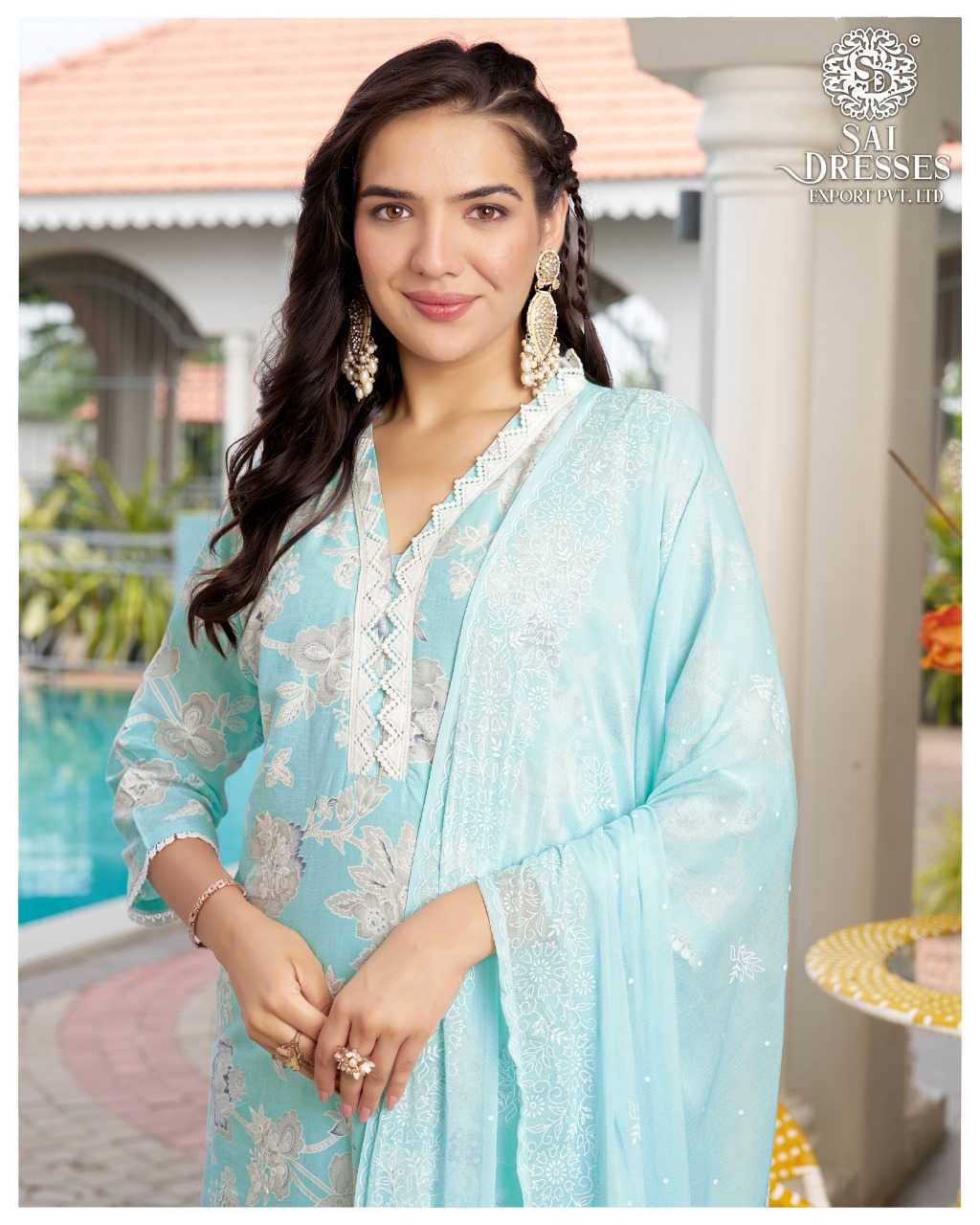 PURE COTTON WITH HEAVY EMBROIDERY & GPO LACE B.NO. 9156 3 PIECE COMBO SET