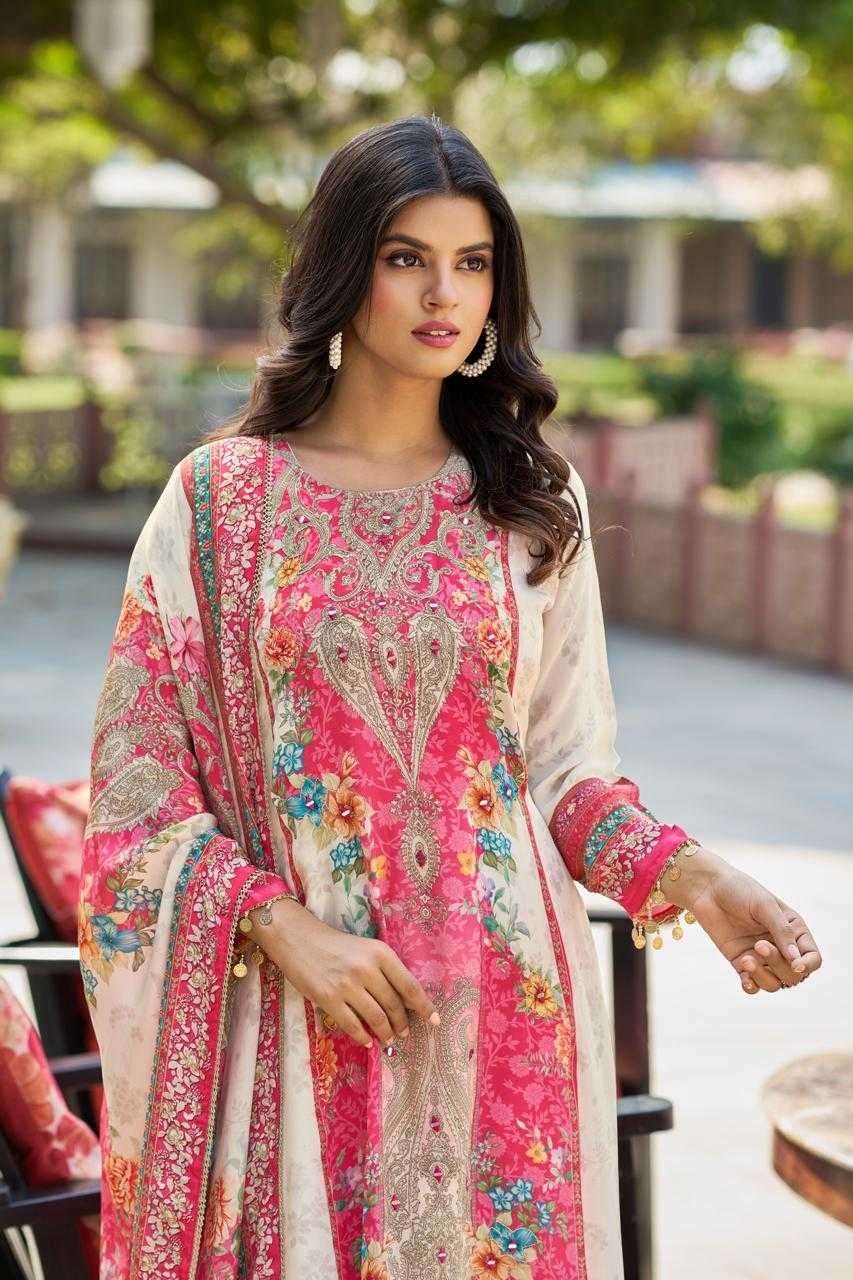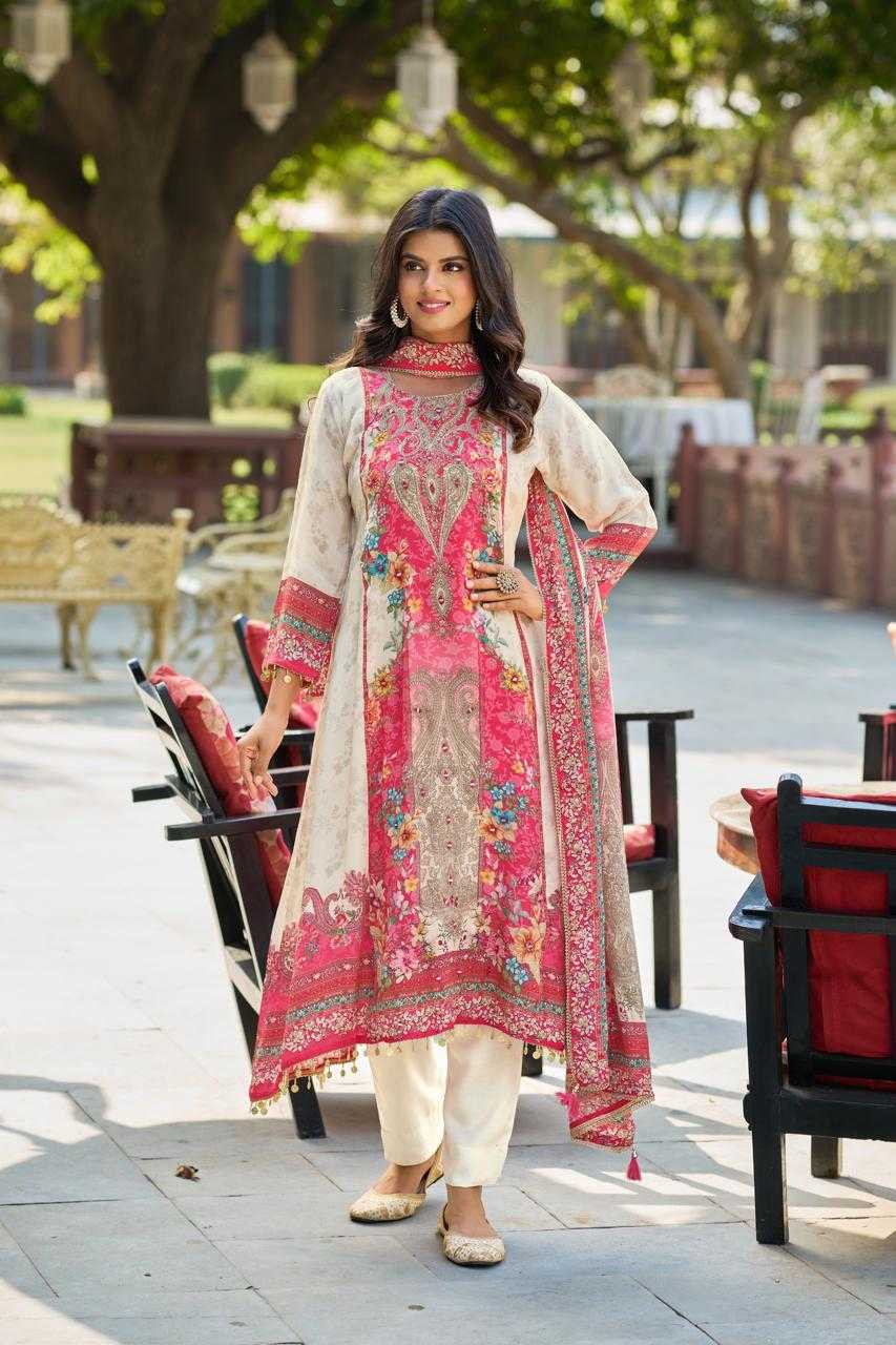 PURE NATURAL CREPE WITH HEAVY HANDWORK & DIGITAL PRINT TO FESTIVE WEAR ROUND KURTI WITH PAINT STYLE DESIGNER 3 PIECE COMBO SUITS IN WHOLESALE RATE IN SURAT