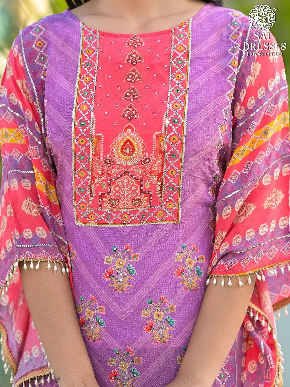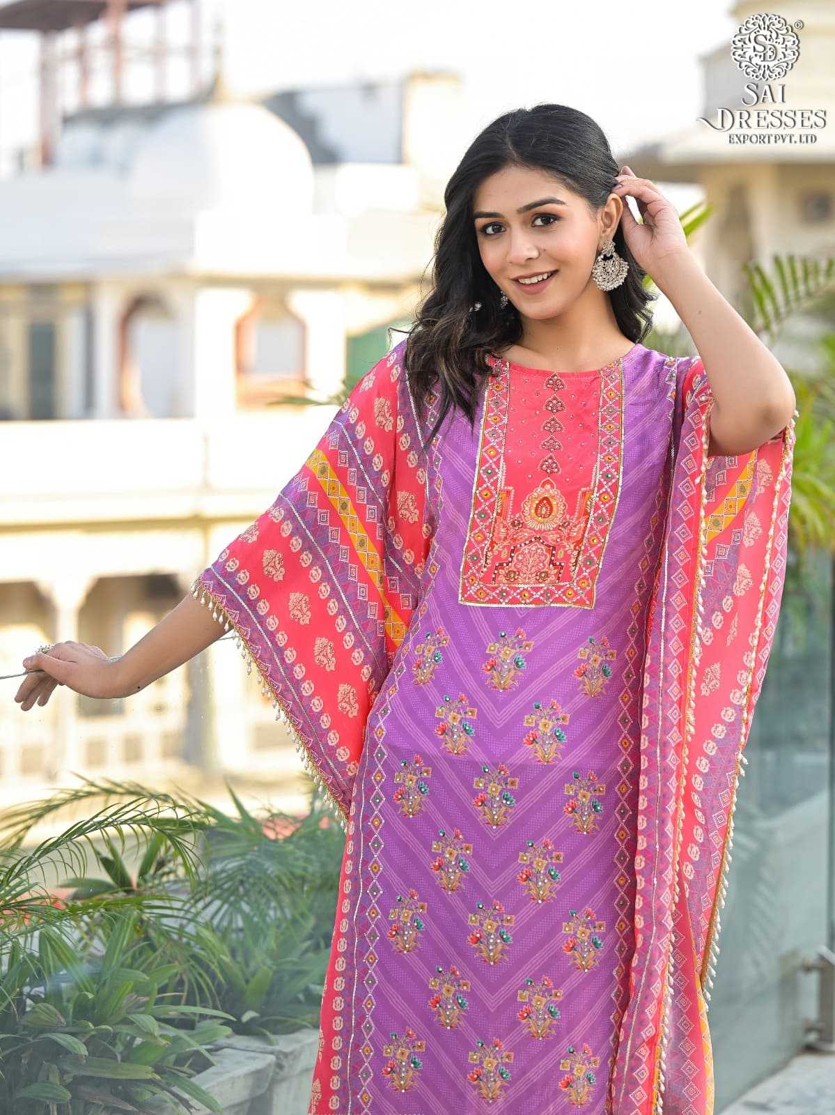 PURPLE PRINTED CREPE KAFTN KURTA PENT SET READY TO FESTIVE WEAR STRAIGHT CUT KURTI WITH PANT STYLE DESIGNER 2 PIECE COMBO SUITS IN WHOLESALE RATE IN SURAT