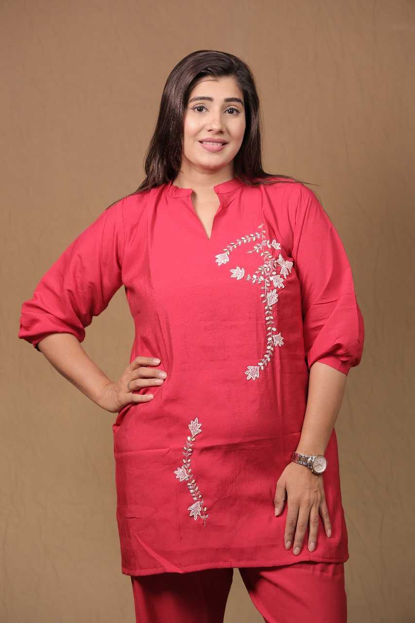RED ROMAN SILK WITH HANDWORK TO FESTIVE WEAR STRAIGHT CUT CORD SET STYLE DESIGNER 2 PIECE COMBO SUITS IN WHOLESALE RATE IN SURAT