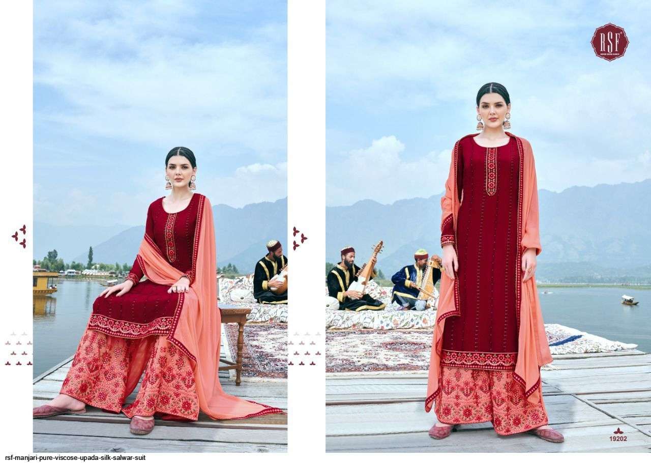 RSF PRESENT MANJARI PURE VISCOSE UPADA SILK IN HEAVY MIRROR WORK SHARARA DESIGNER SUIT IN WHOLESALE PRICE IN SURAT - SAI DRESSES