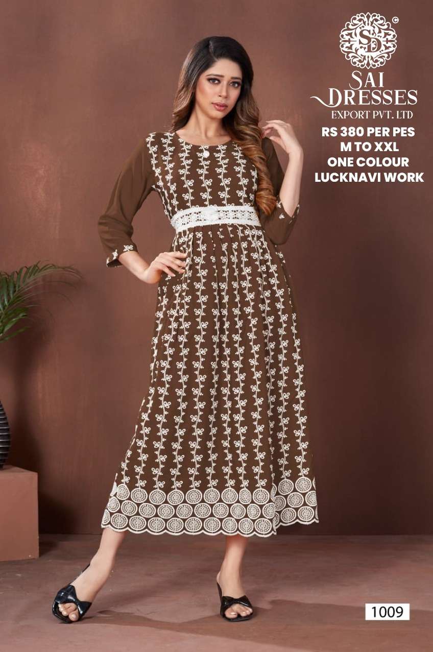 SAI DRESSES PRESENT D.NO 1009 READY TO WEAR LUCKNAVI LONG DESIGNER KURTI COMBO COLLECTION IN WHOLESALE RATE IN SURAT