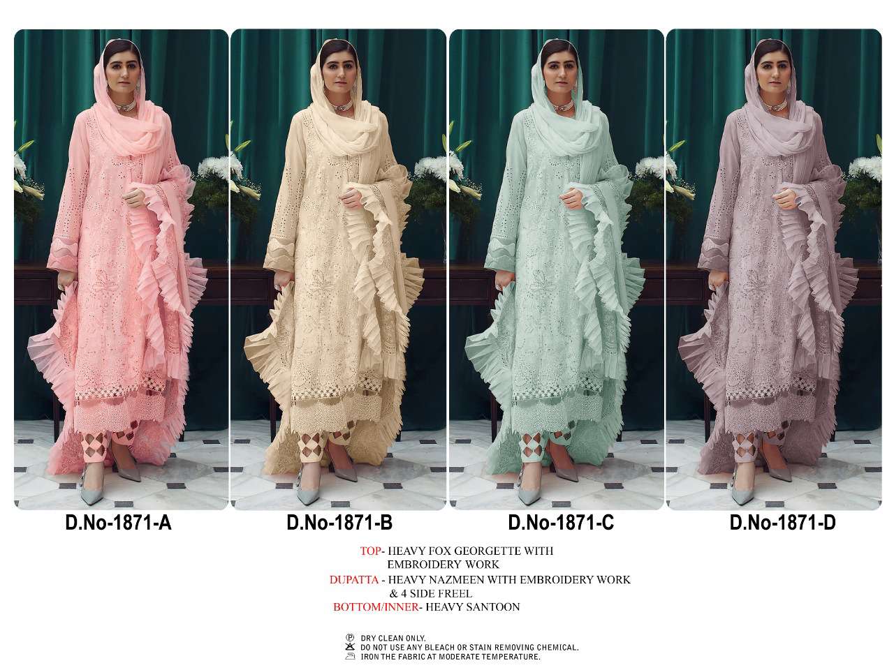 SAI DRESSES PRESENT D.NO 1871 A TO 1871 D FANCY PARTY WEAR EMBROIDERED PAKISTANI DESIGNER SUITS IN WHOLESALE RATE IN SURAT