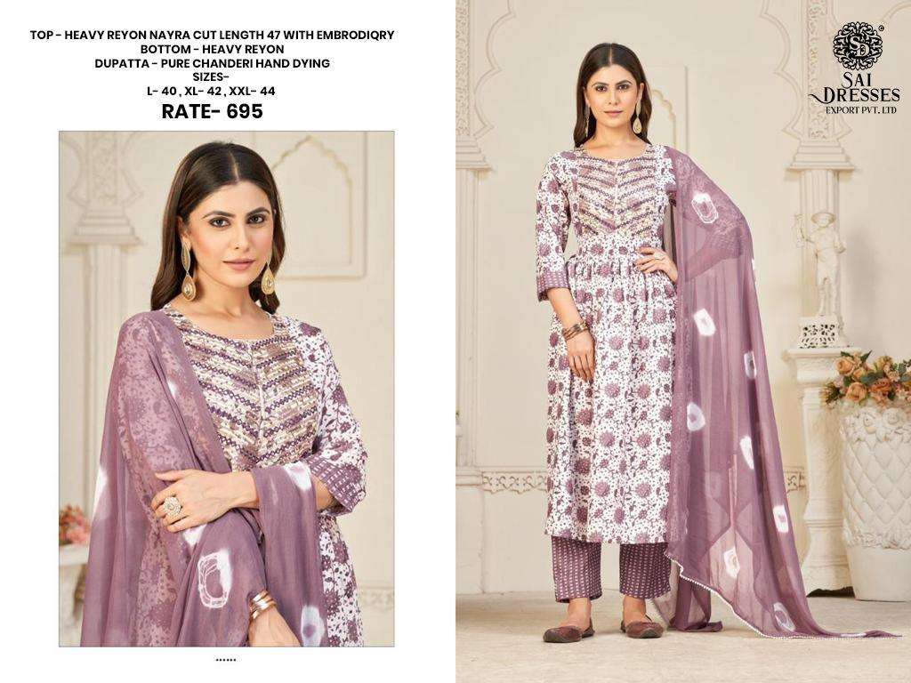 SAI DRESSES PRESENT D.NO 325 READY TO WEAR NAIRA CUT 3 PIECE COMBO COLLECTION IN WHOLESALE RATE IN SURAT