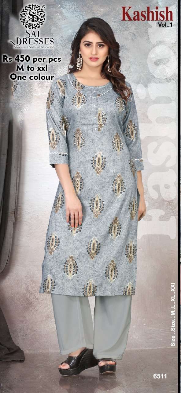 SAI DRESSES PRESENT D.NO 6511 SIMPLE KURTI COMBO SET IN WHOLESALE RATE IN SURAT