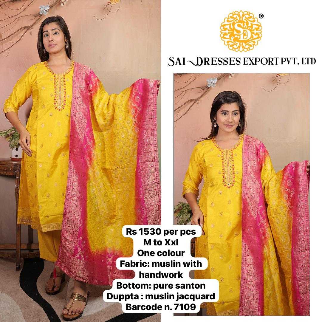 SAI DRESSES PRESENT D.NO 7109-A READY TO FESTIVE WEAR STRAIGHT CUT KURTI WITH PANT STYLE DESIGNER 3 PIECE COMBO SUITS IN WHOLESALE RATE IN SURAT