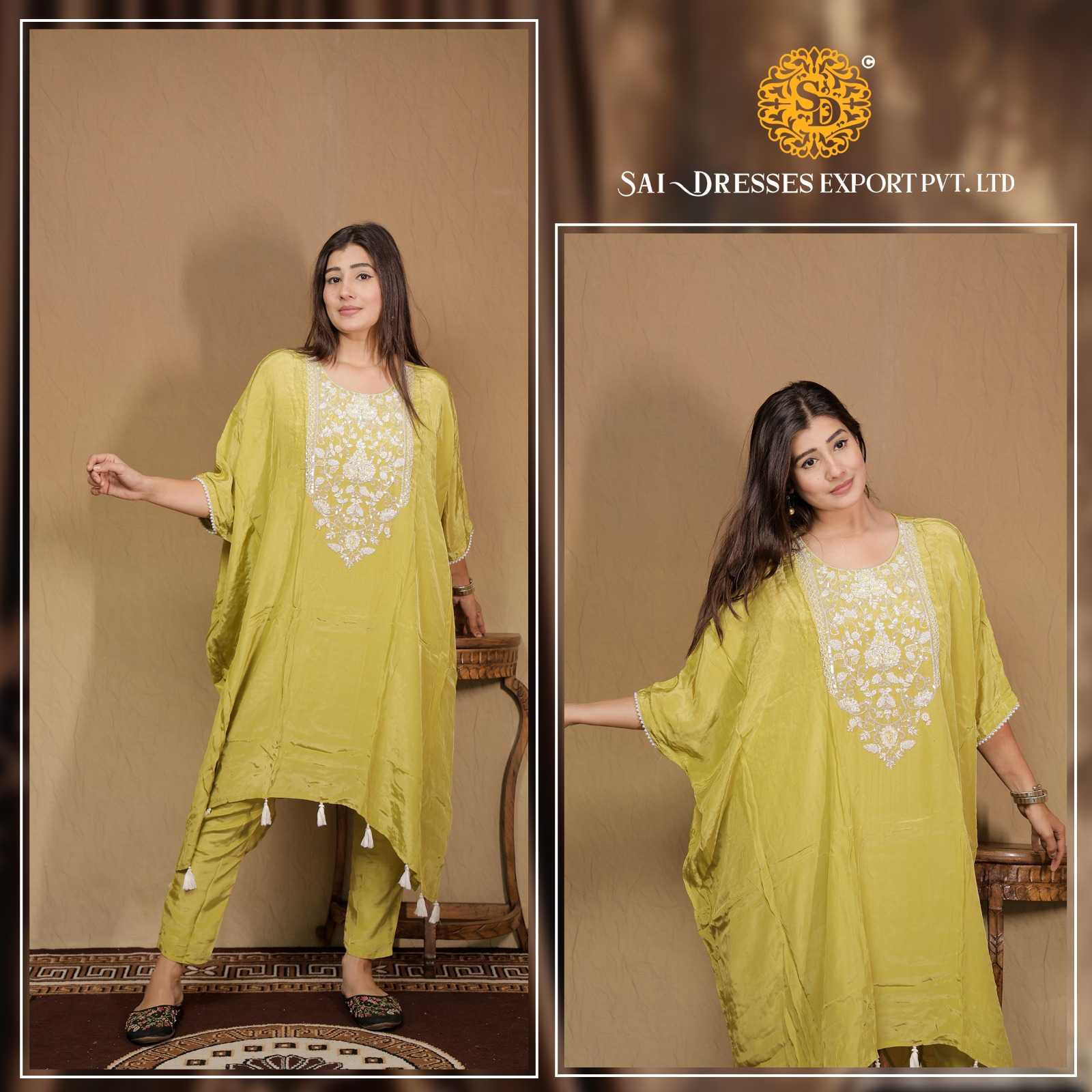 SAI DRESSES PRESENT D.NO 7381-B READY TO FESTIVE WEAR STRAIGHT CUT KURTI WITH PANT STYLE DESIGNER 2 PIECE COMBO SUITS IN WHOLESALE RATE IN SURAT