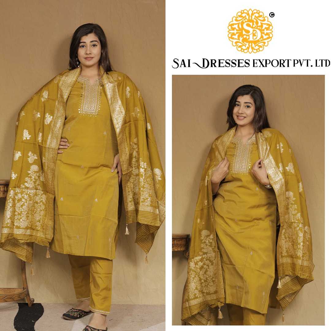 SAI DRESSES PRESENT D.NO 7943-A READY TO FESTIVE WEAR STRAIGHT CUT KURTI WITH PANT STYLE DESIGNER 3 PIECE COMBO SUITS IN WHOLESALE RATE IN SURAT
