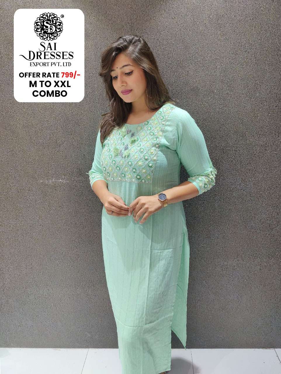 SAI DRESSES PRESENT D.NO SD17 HEAVY HANDWORK DESIGNER KURTI COMBO COLLECTION IN WHOLESALE RATE IN SURAT