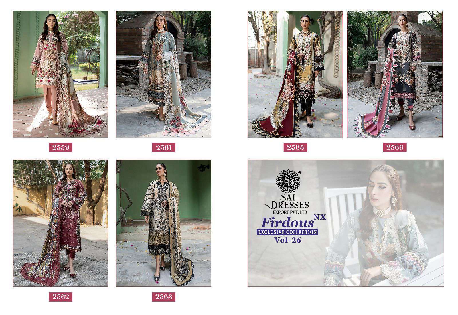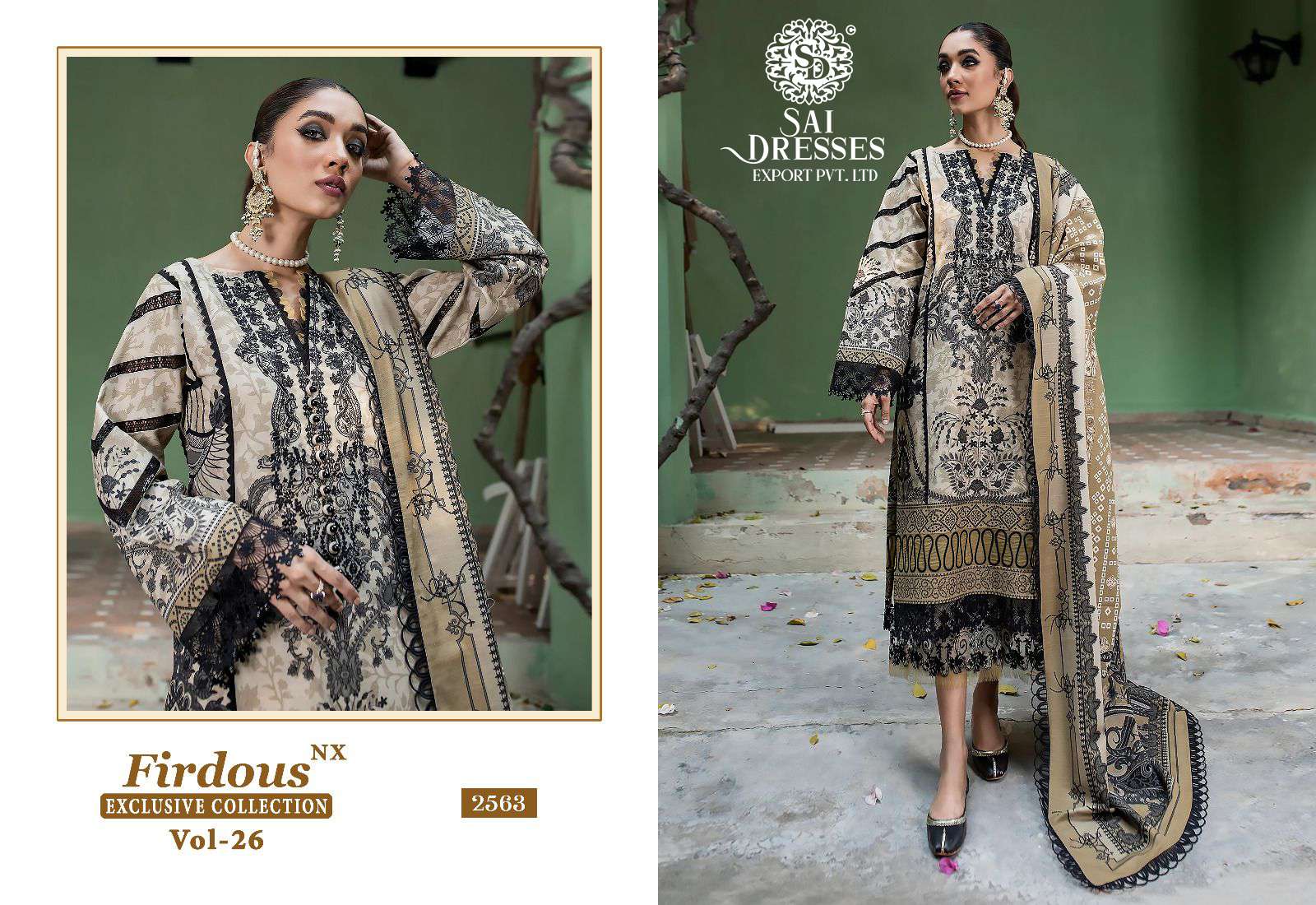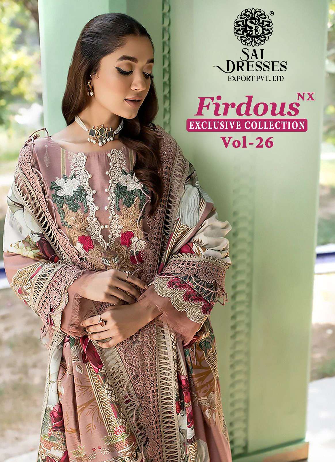 SAI DRESSES PRESENT FIRDOUS EXCLUSIVE COLLECTION VOL 26 NX PURE COTTON PRINTED PAKISTANI DESIGNER SUITS IN WHOLESALE RATE IN SURAT