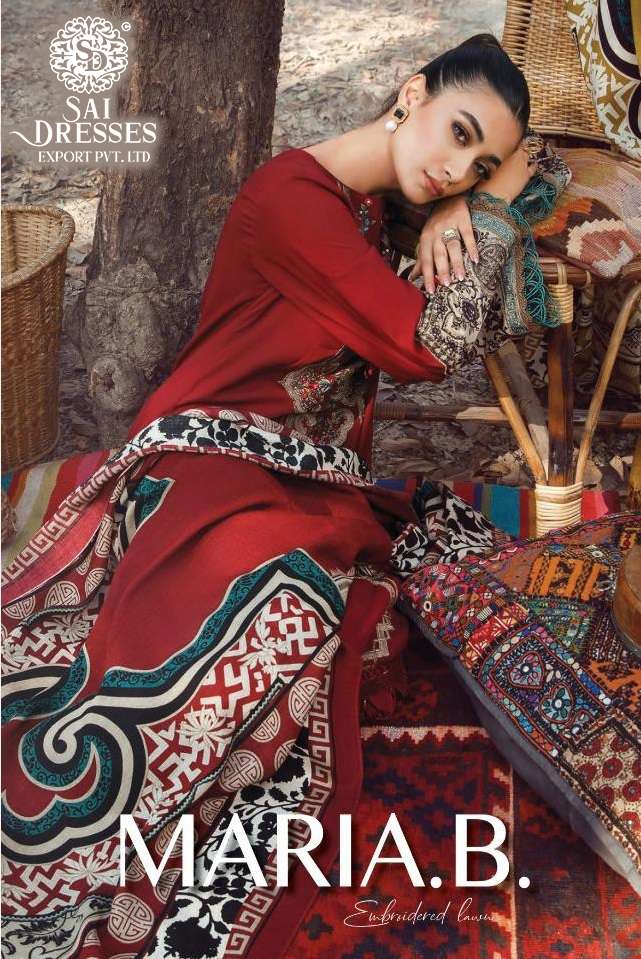 SAI DRESSES PRESENT MARIA B EMBROIDERED LAWN PURE COTTON PAKISTANI DESIGNER SUITS IN WHOLESALE RATE IN SURAT