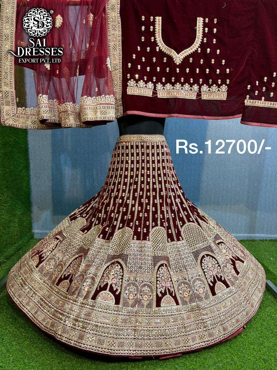 SAI DRESSES PRESENT WEDDING WEAR BEAUTIFUL MAROON DESIGNER LEHENGA COLLECTION IN WHOLESALE RATE IN SURAT