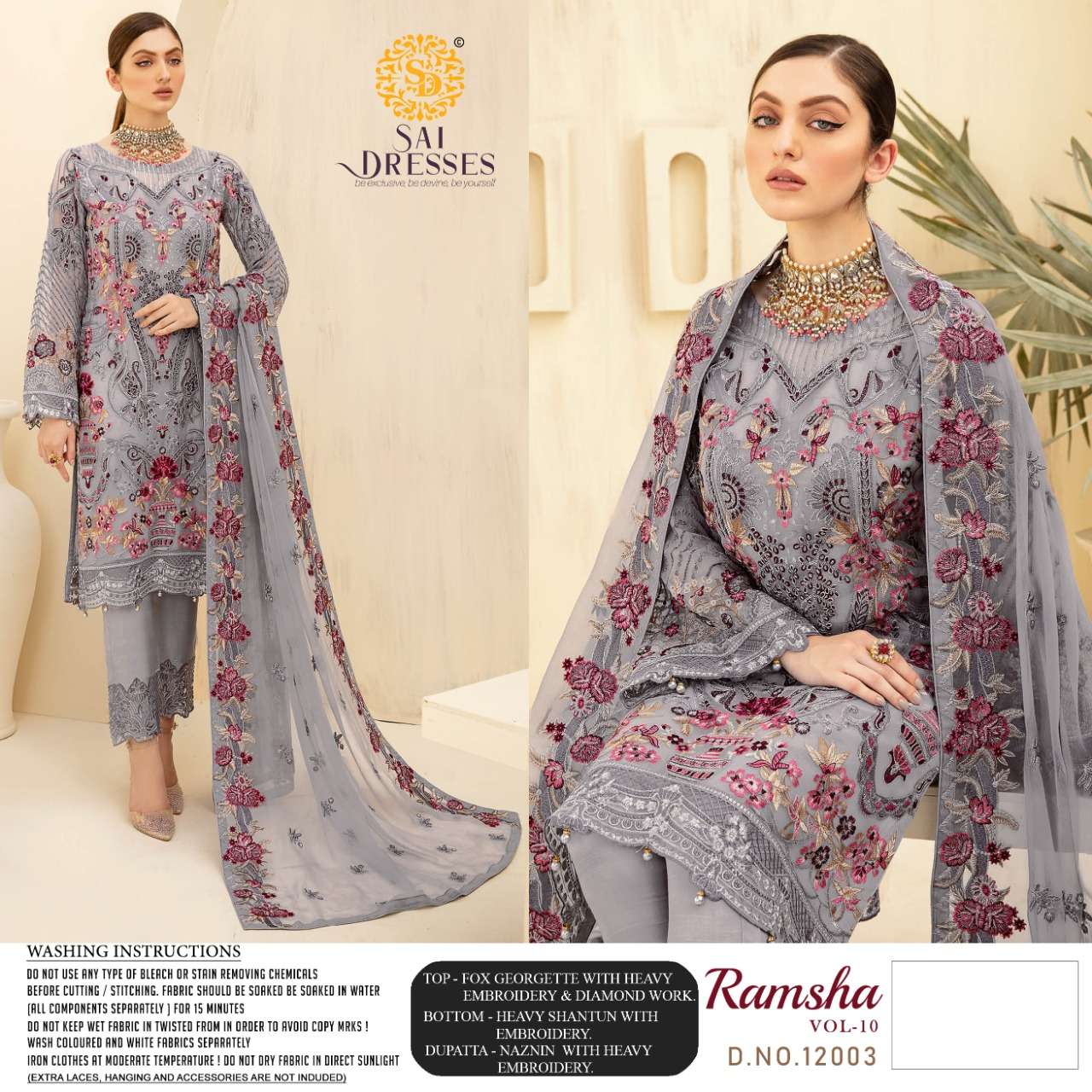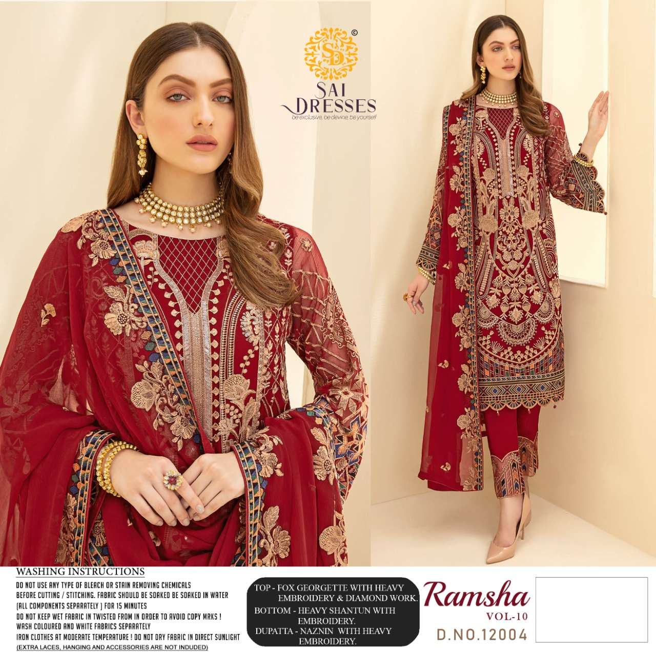 SAI DRESSES PRESENTS LATEST DESIGNER CATALOG RAMSHA VOL-10NX WHOLESALE RATE IN SURAT- SAI DRESSES
