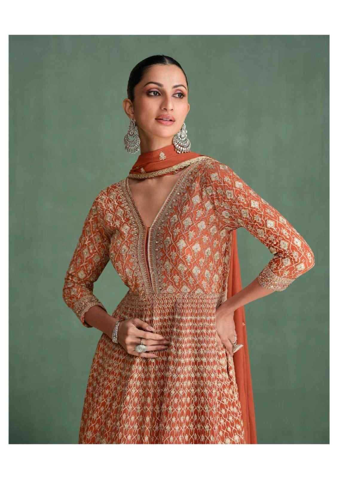 Fabric :- Real Gerogette / Premium Real Chinon Silk (Full Heavy Look Seroski Diamond Embroidered Dresses With Embroidered Dupatta)