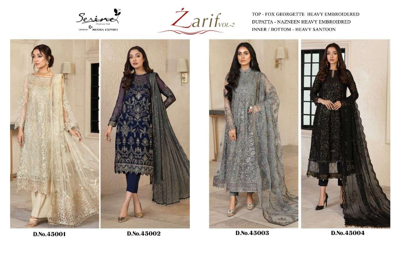 SERENE PRESENT ZARIF VOL 2 GEORGETTE WITH EMBROIDERY SEMI STITCHED PAKISTANI SUITS IN WHOLESALE PRICE IN SURAT - SAI DRESSES