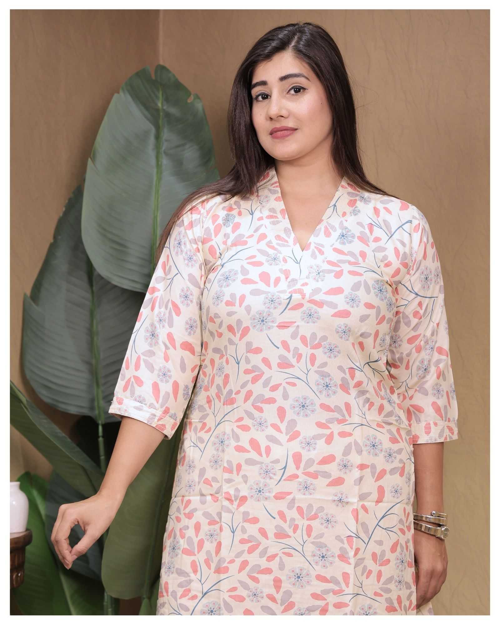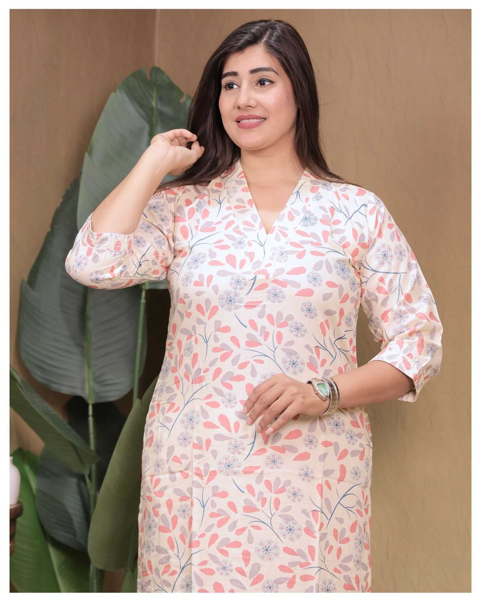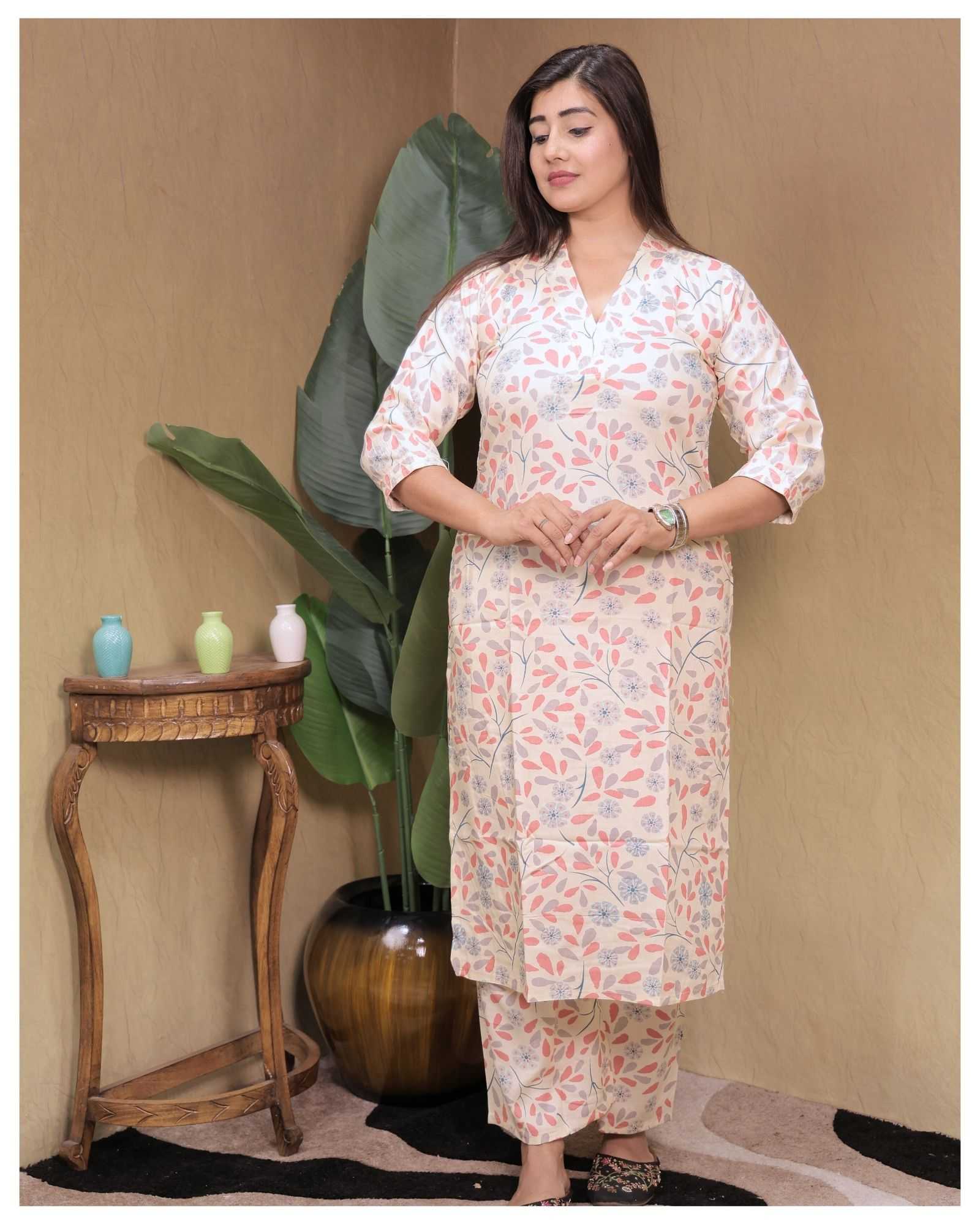 SOFT PEACH FLOWER PRINT WITH KURTI PANT STYLE DESIGNER 2 PIECE COMBO SUITS IN WHOLESALE RATE IN SURAT