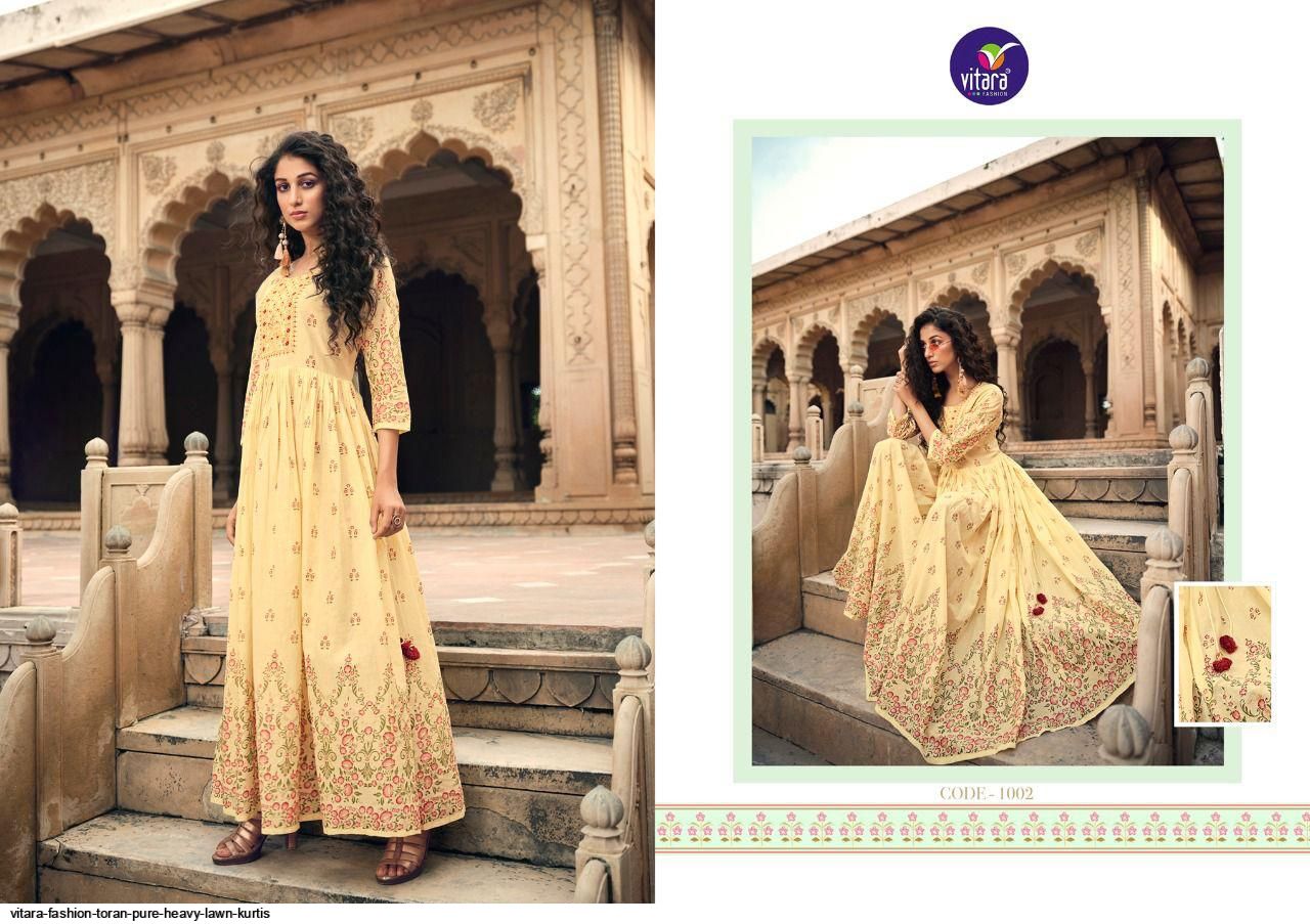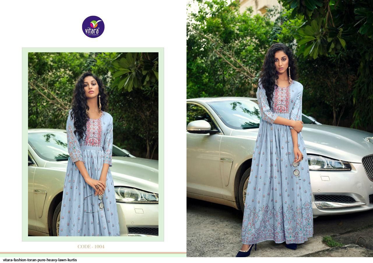 Vitara Fashion Presnets Toran Pure Heavy Lawn Kurtis Wholesale Rate In Surat - Sai Dresses