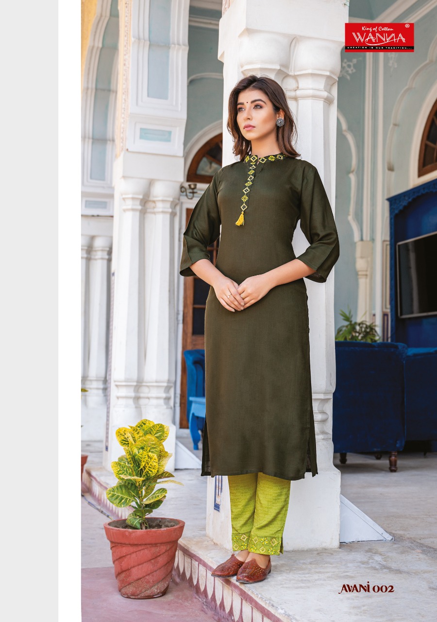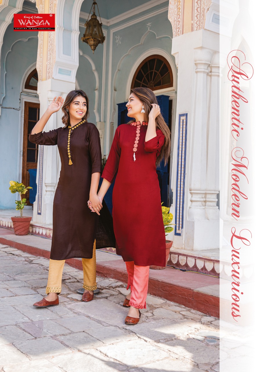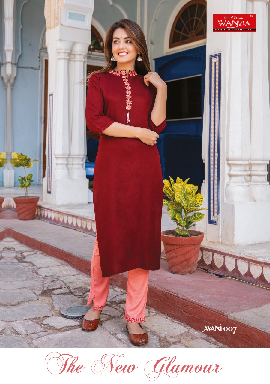 Wanna Looks Presents Avani Super Fancy Heavy Rayon Designer Kurti With Pant Concept Catalog At Wholesale Rate In Surat